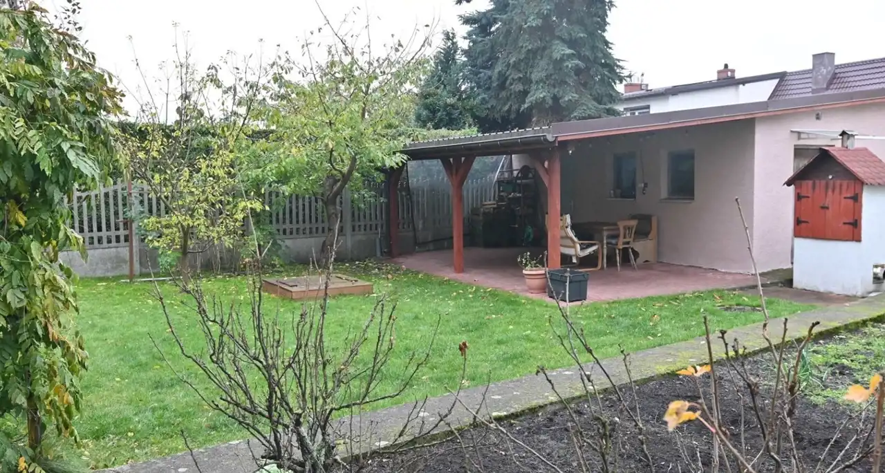 Dzięki zadaszeniu w postaci wiaty możemy odpoczywać na zewnątrz niezależnie od pogody. Własna wędzarnia oraz palenisko doskonale sprawdzą się podczas przyjmowania gości. Znajdziemy tu również ogródek warzywny, kompostownik, piaskownicę oraz liczne nasadzenia.