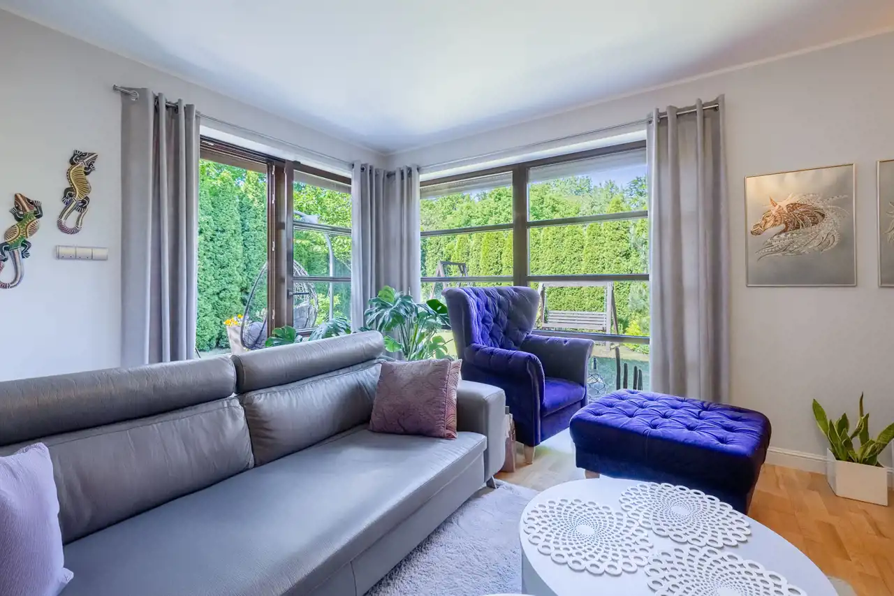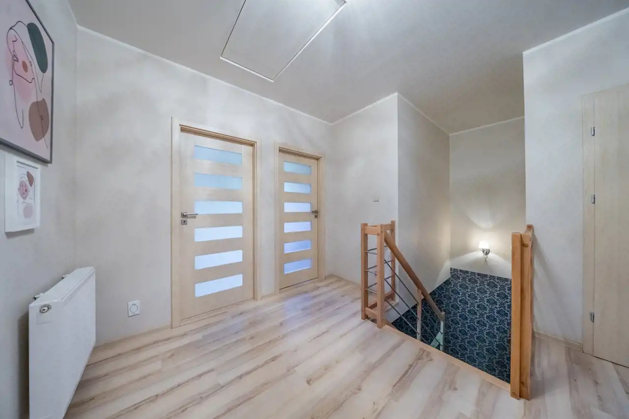 Nieruchomość jest starannie utrzymana, gotowa do wprowadzenia - podłogi i schody jesionowe są w doskonałym stanie, ściany niewymagające odświeżenia. Rolety i plisy we wszystkich oknach zapewniają komfort i prywatność. Całość urządzona funkcjonalnie, z dbałością o detale – wnętrza są gotowe do zamieszkania bez dodatkowych nakładów. W cenie nieruchomości pozostają: