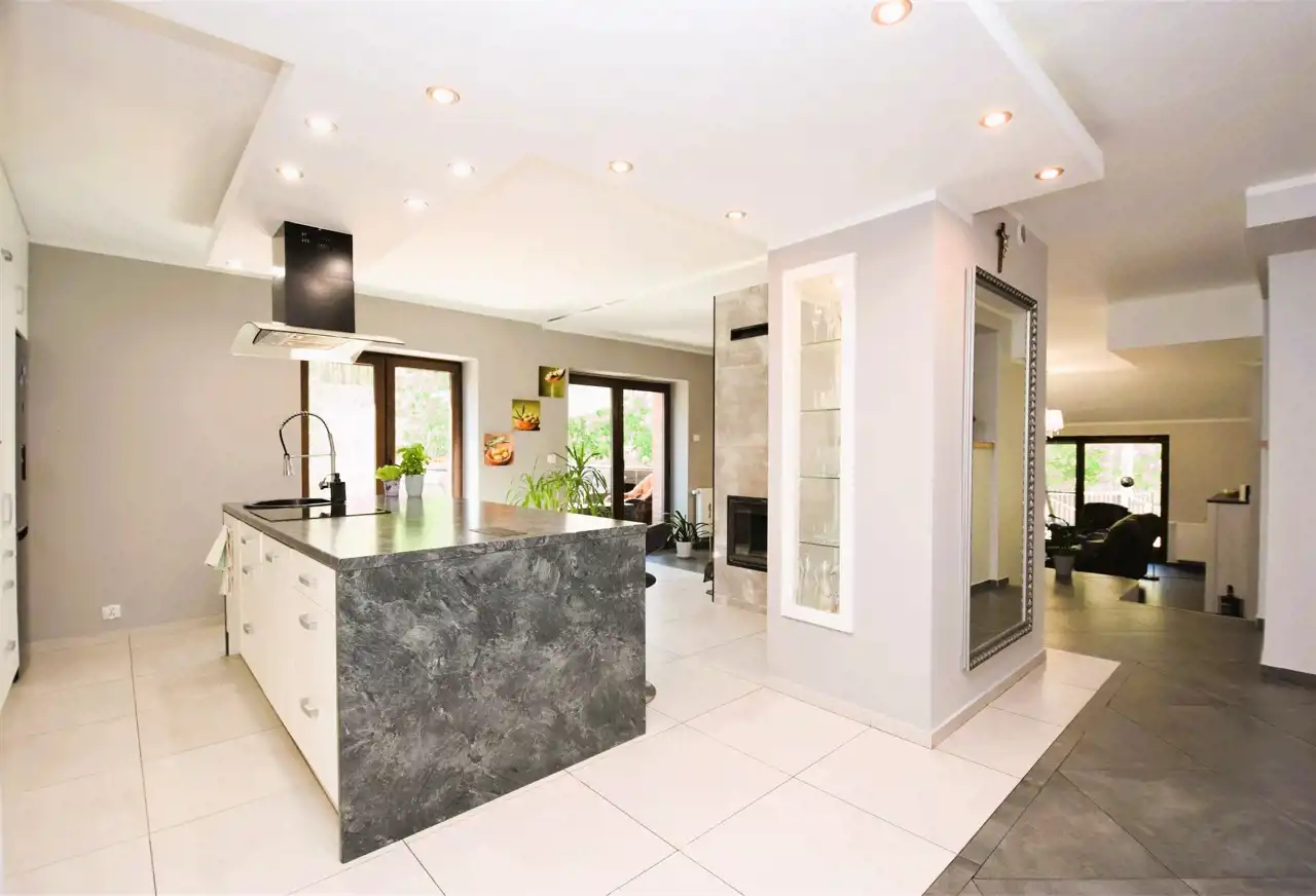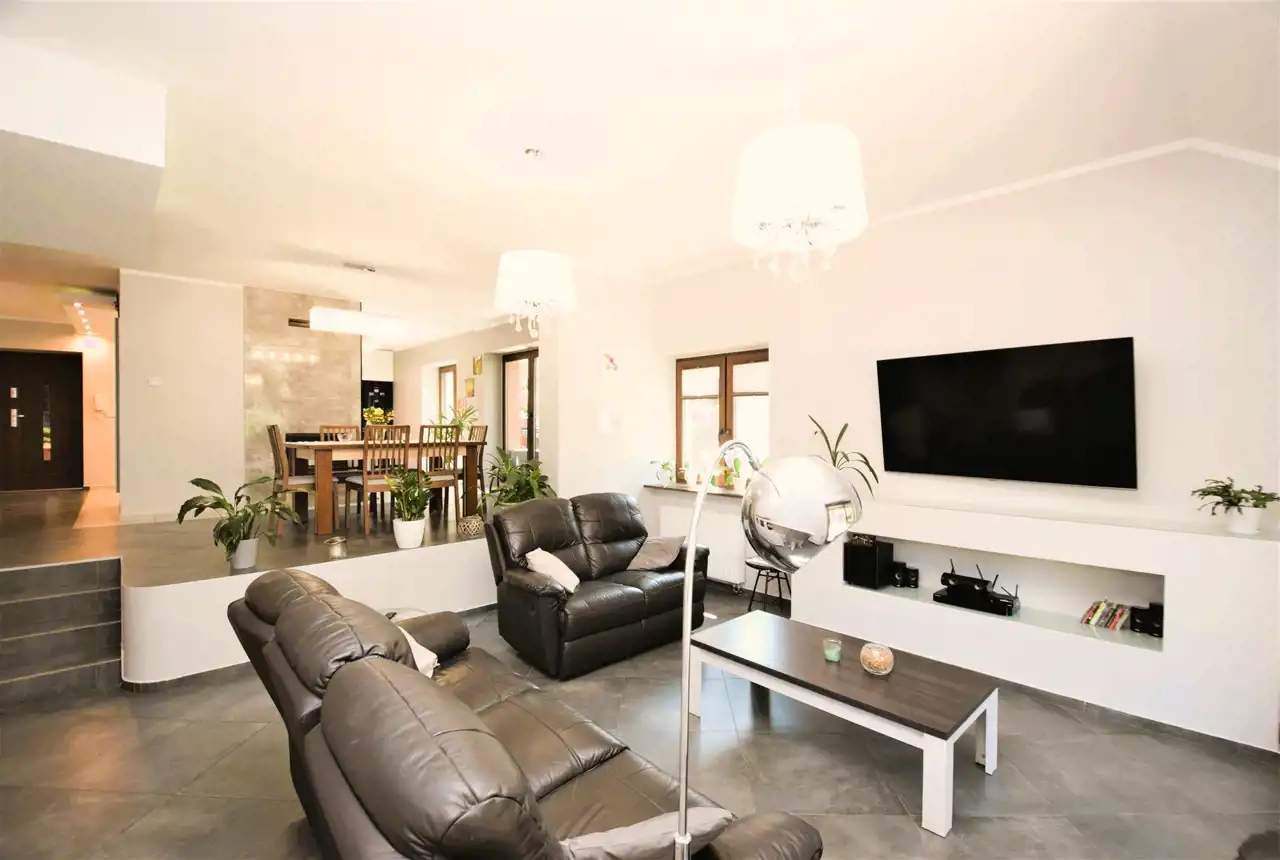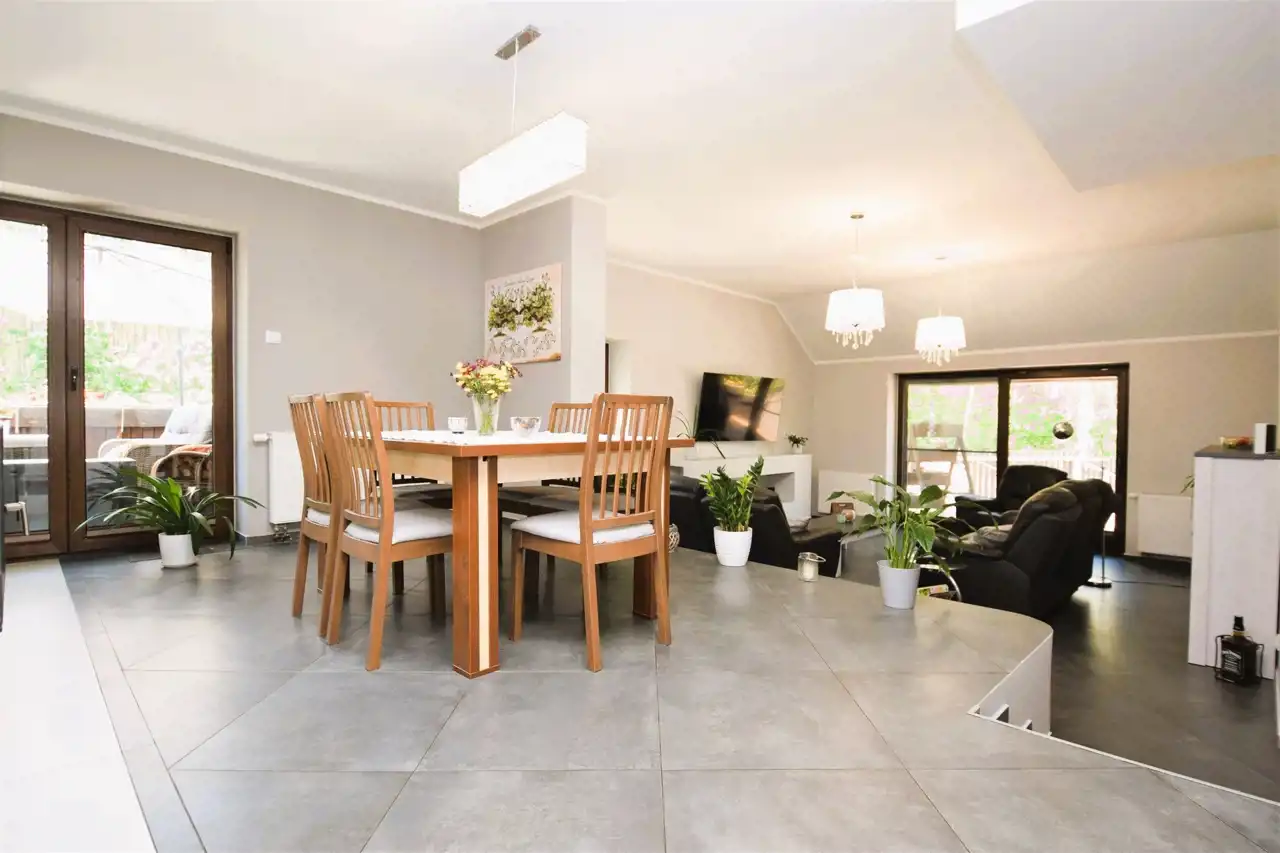 Idealnie zaprojektowany dom, elegancko wykończone wnętrze, zagospodarowany ogród.