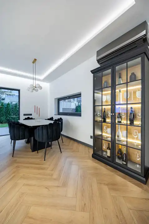 - Stylowa kuchnia: Przestronna, z dużym oknem, doskonale doświetlona i wyposażona w najnowszy sprzęt oraz zabudowę kuchenną, stanowiąca serce domu. Jej nieprzeciętny design z pewnością zachwyci każdego miłośnika gotowania.