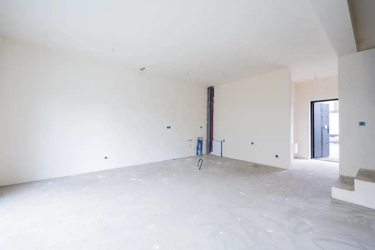 - Przestronny salon z aneksem kuchennym: Serce domu, gdzie zjesz wspólny posiłek i odpoczniesz z widokiem na własny ogród.