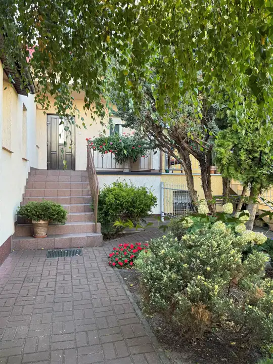 Dom o pow. całkowitej ok. 206m2, pow. użytkowa 107,5m2 położony na działce o pow. 225m2. Nieruchomość wybudowana metodą tradycyjną, murowana, ocieplona wełną mineralną. Dach konstrukcji drewnianej kryty blachodachówka, stolarka okienna PCV z roletami zewnętrznymi (częściowo elektryczne). Ściany gipsowane malowane, na podłodze terakota, panele podłogowe oraz wykładzina dywanowa