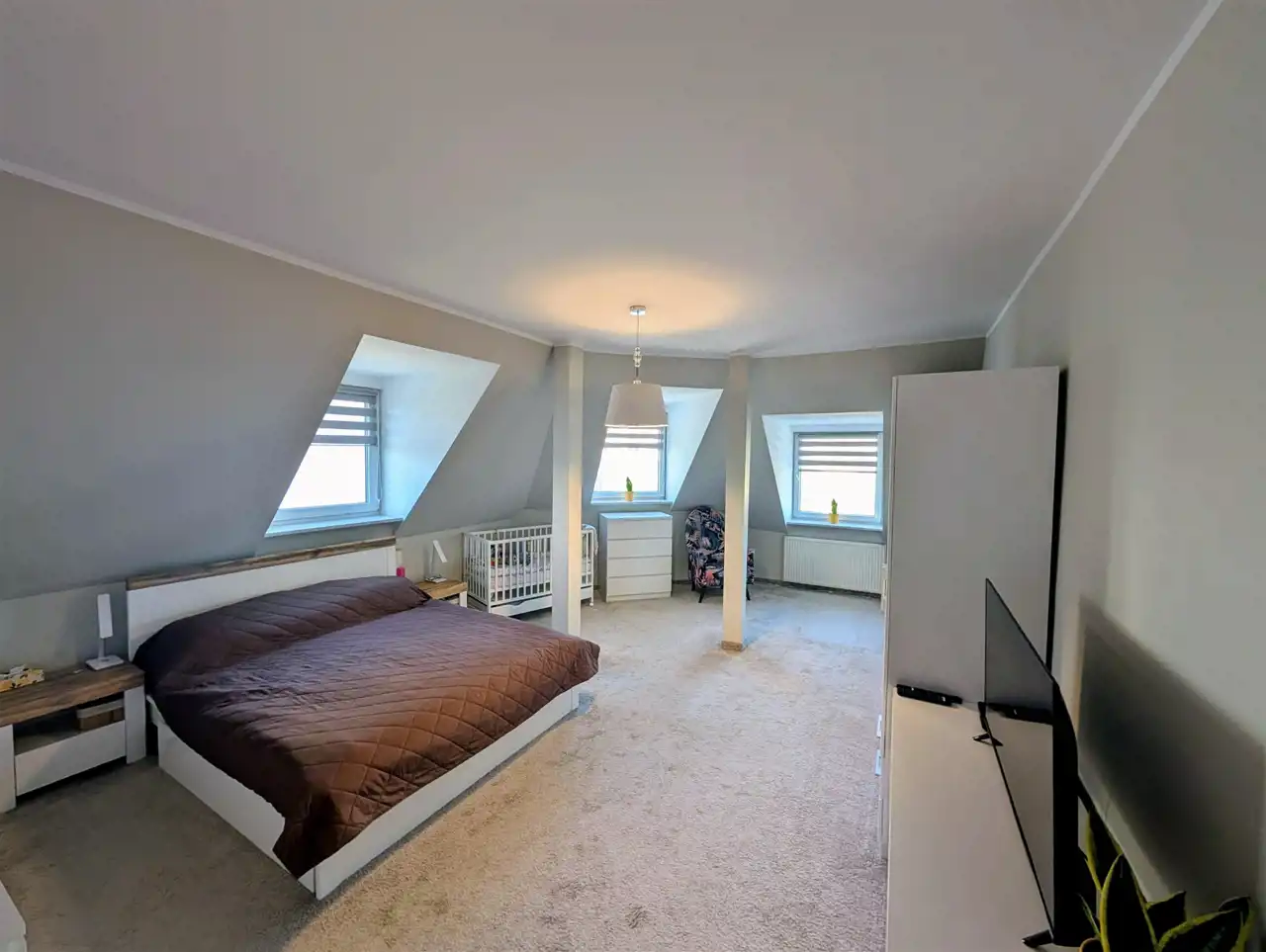 Zagospodarowane jako strefa prywatna, składająca się z bardzo przestronnej sypialni, pokoju, łazienki oraz komunikacji.