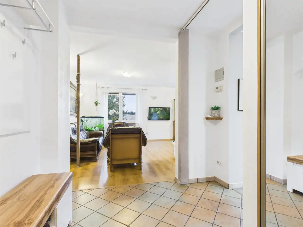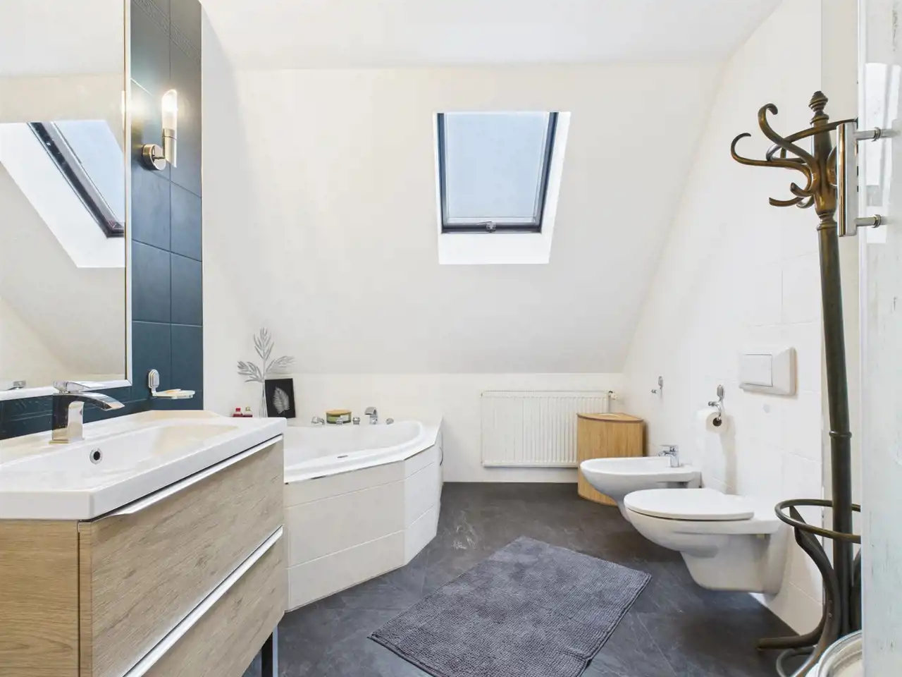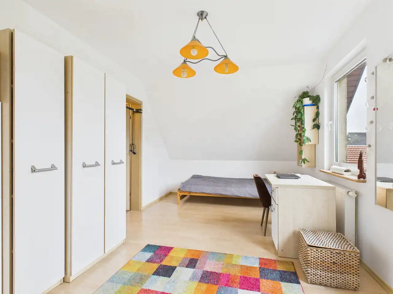 Osobne wejście do pokoju i łazienki daje wiele możliwość: doskonałe miejsce pracy lub drugi lokal mieszkalny.