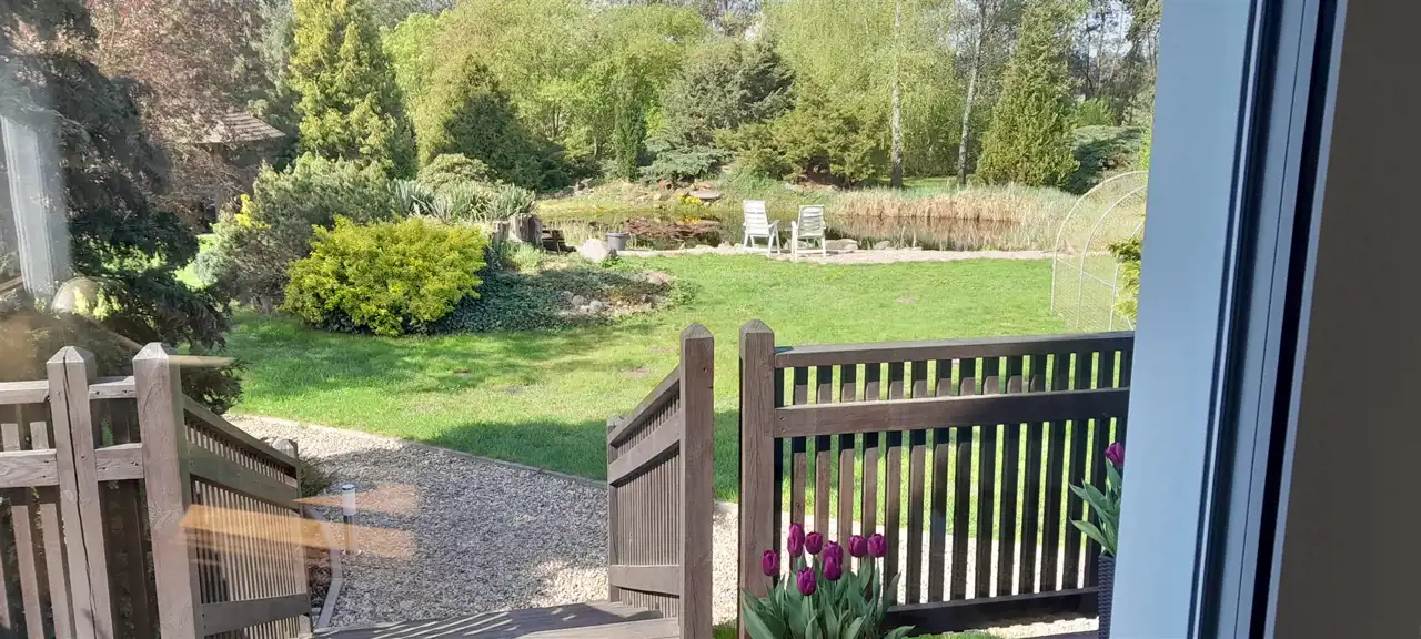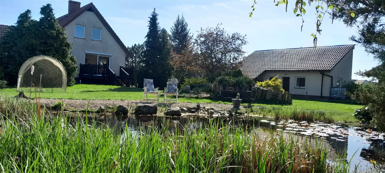 Niewątpliwym atutem tej nieruchomości jest pięknie zagospodarowana działka ze stawkiem.