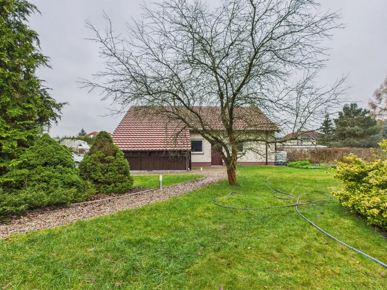 Na działce mamy również garaż z pomieszczeniem gospodarczym.