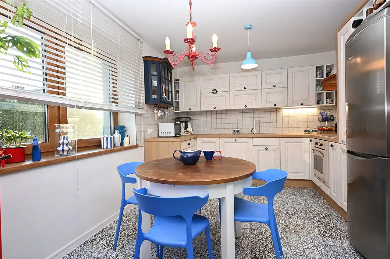 - Kuchnia-połączona z salonem - ok. 13 m², jasna i funkcjonalna, z miejscem na stół jadalniany