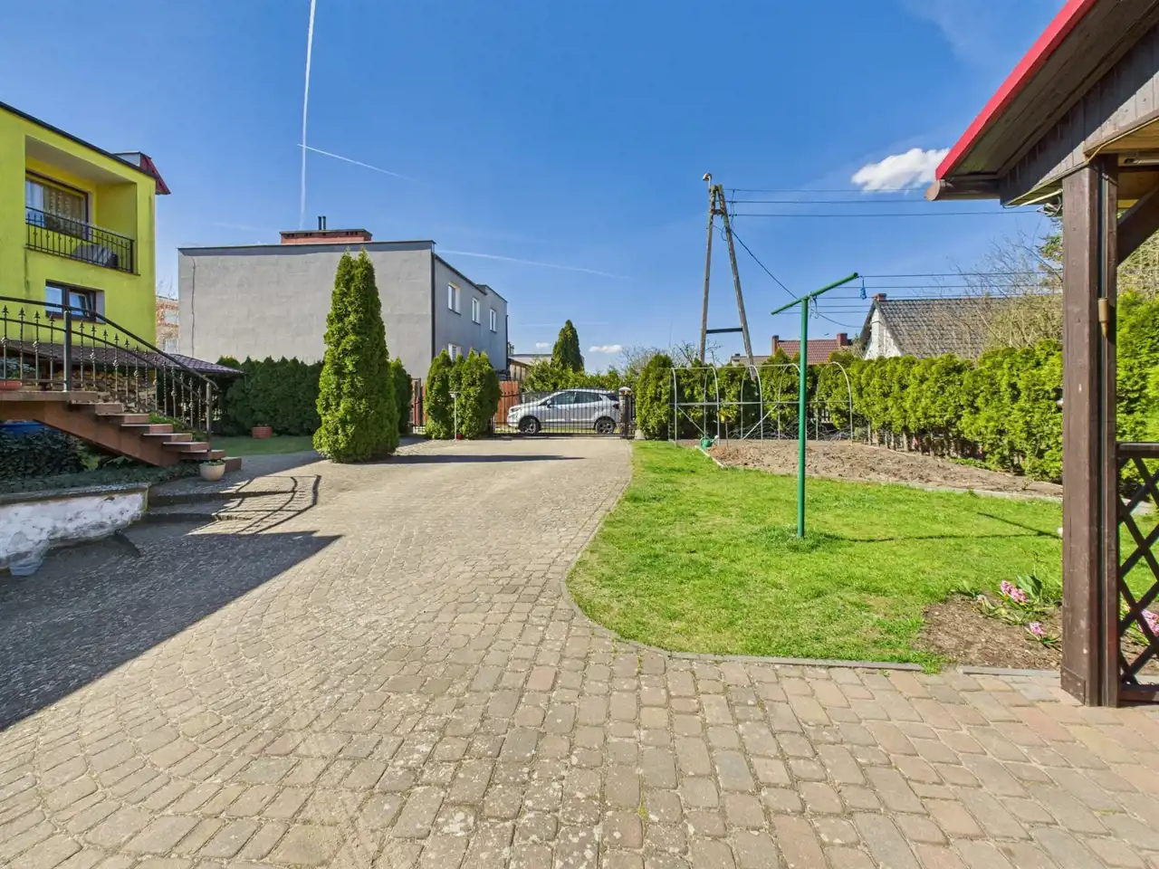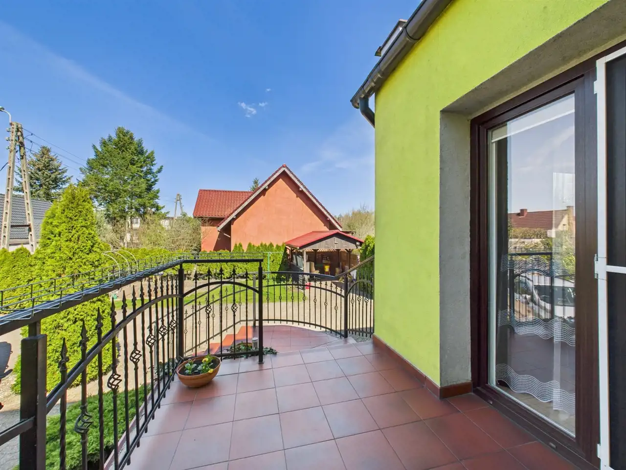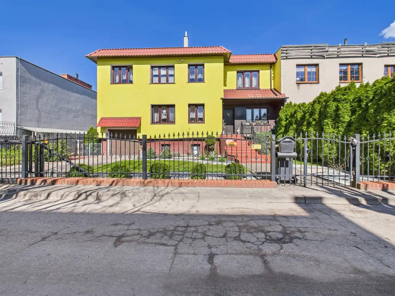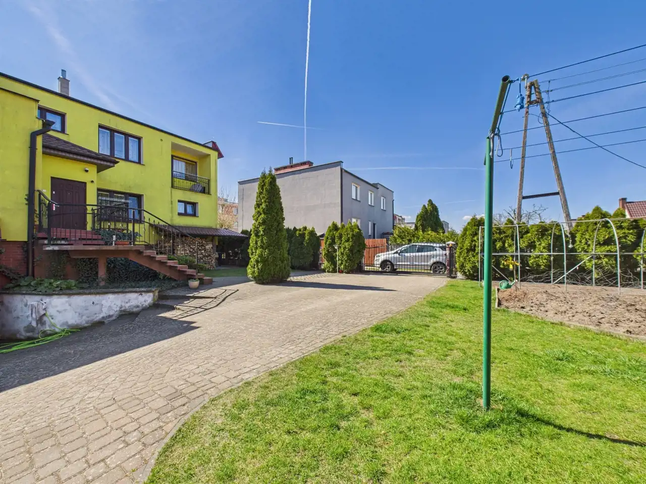 To przestronny dom, który posiada dwa oddzielne mieszkania – jedno na parterze, drugie na piętrze, z dwoma oddzielnymi garażami i bramami wjazdowymi otwieranymi na piloty. Dzięki oddzielnym mediom, każde mieszkanie zapewnia pełną prywatność. W ogrodzie znajduje się strefa rekreacyjna z miejscem do grillowania oraz mały ogródek do uprawy własnych warzyw – idealne do relaksu w ciepłe dni.