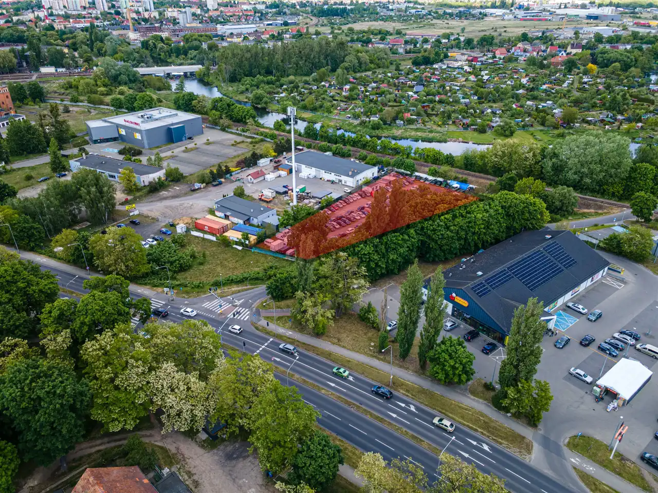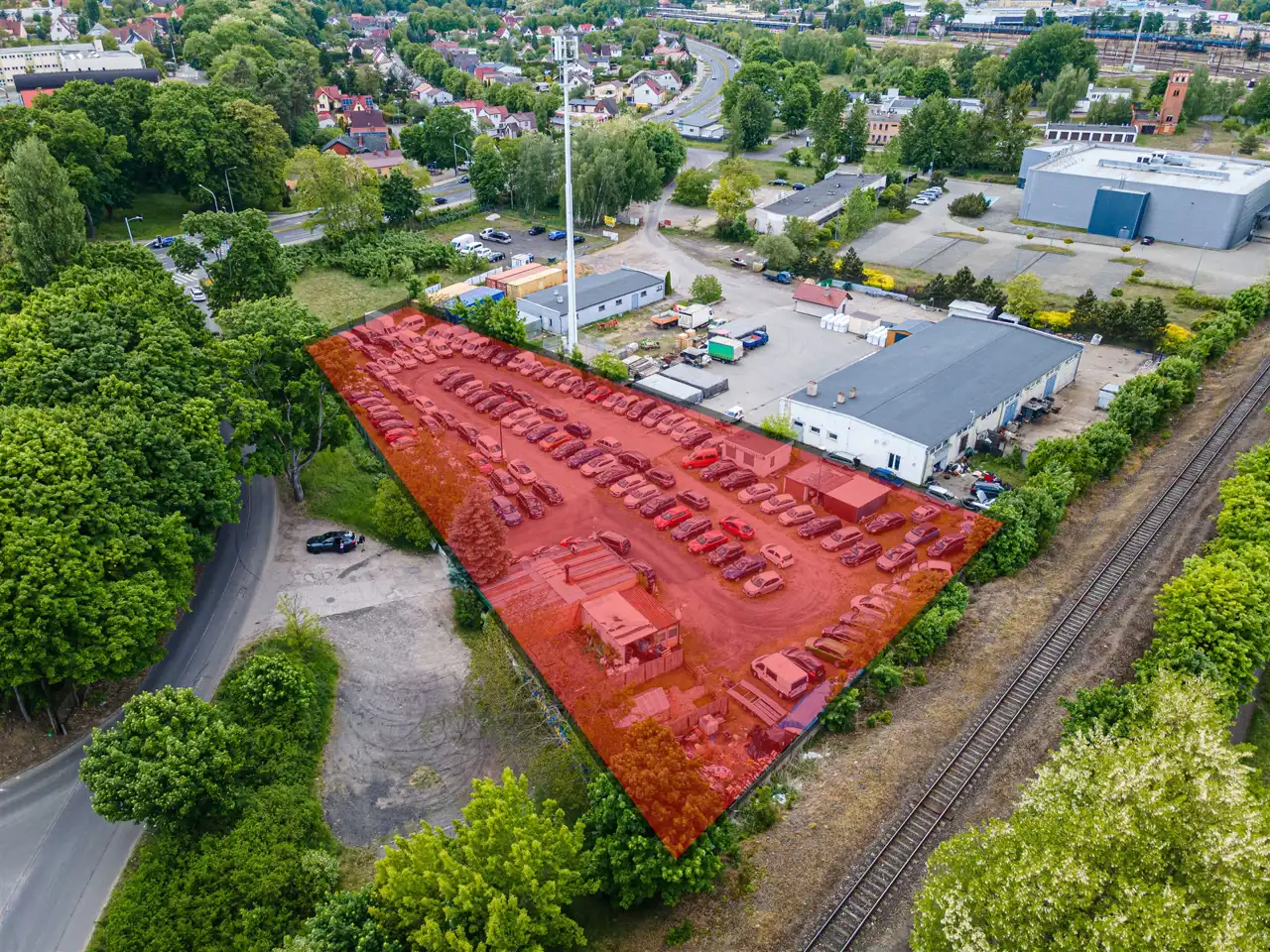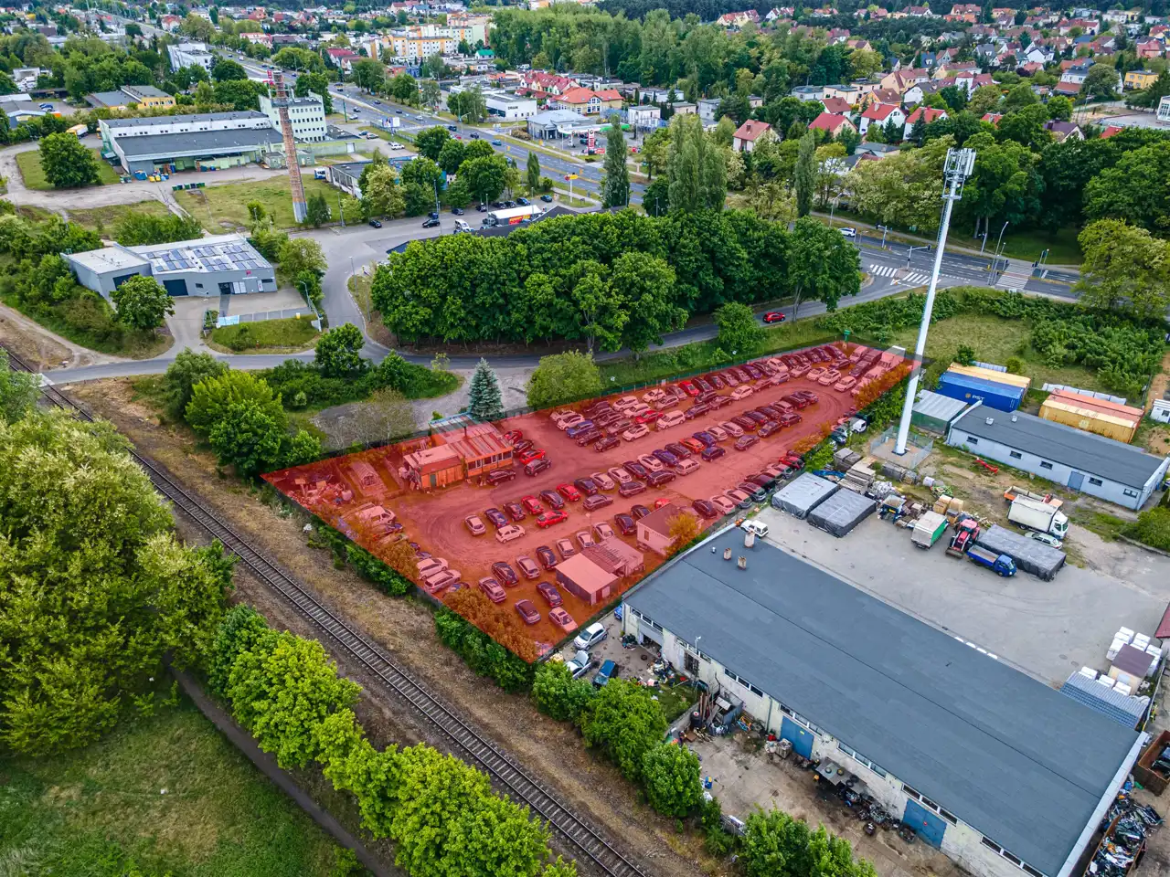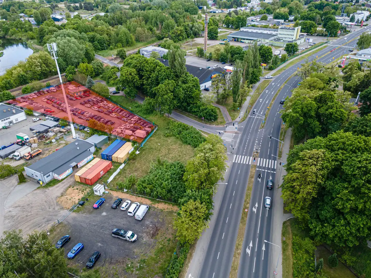 Działka płaska, niezabudowana (zabudowa nietrwała), obecnie wykorzystywana jako auto komis.