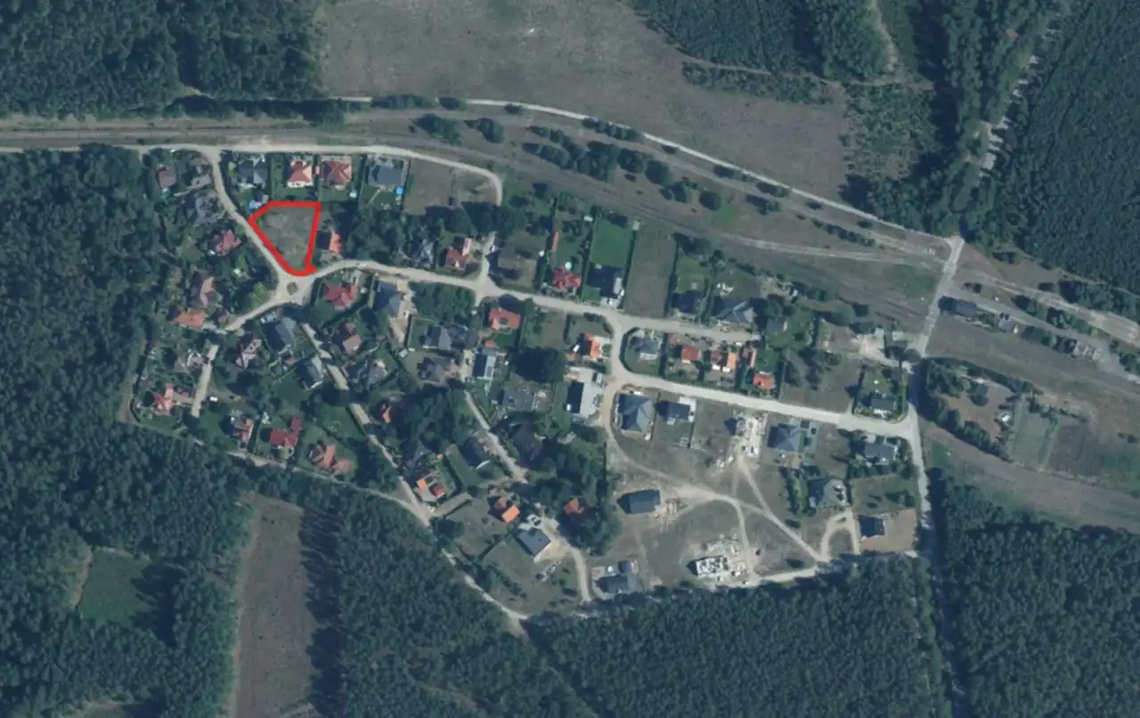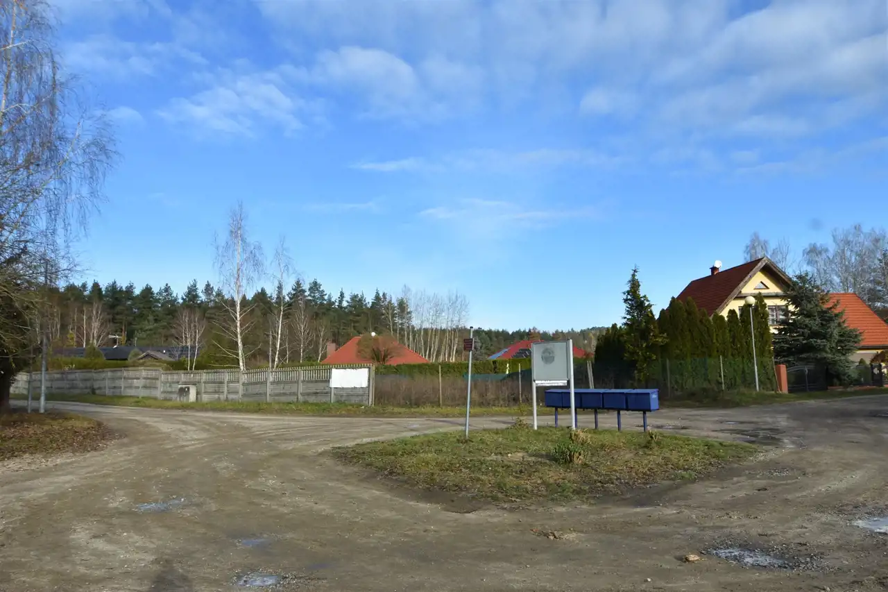 Działka położona jest na podmiejskim osiedlu domów jednorodzinnych. Osiedle otoczone lasem.