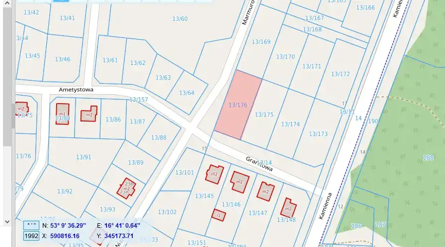 Działka ma regularny kształt prostokąta i położona jest w atrakcyjnym miejscu, na tworzącym się osiedlu nowoczesnych domów.
