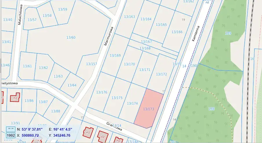 Działka ma regularny kształt prostokąta i położona jest w atrakcyjnym miejscu, na tworzącym się osiedlu nowoczesnych domów.