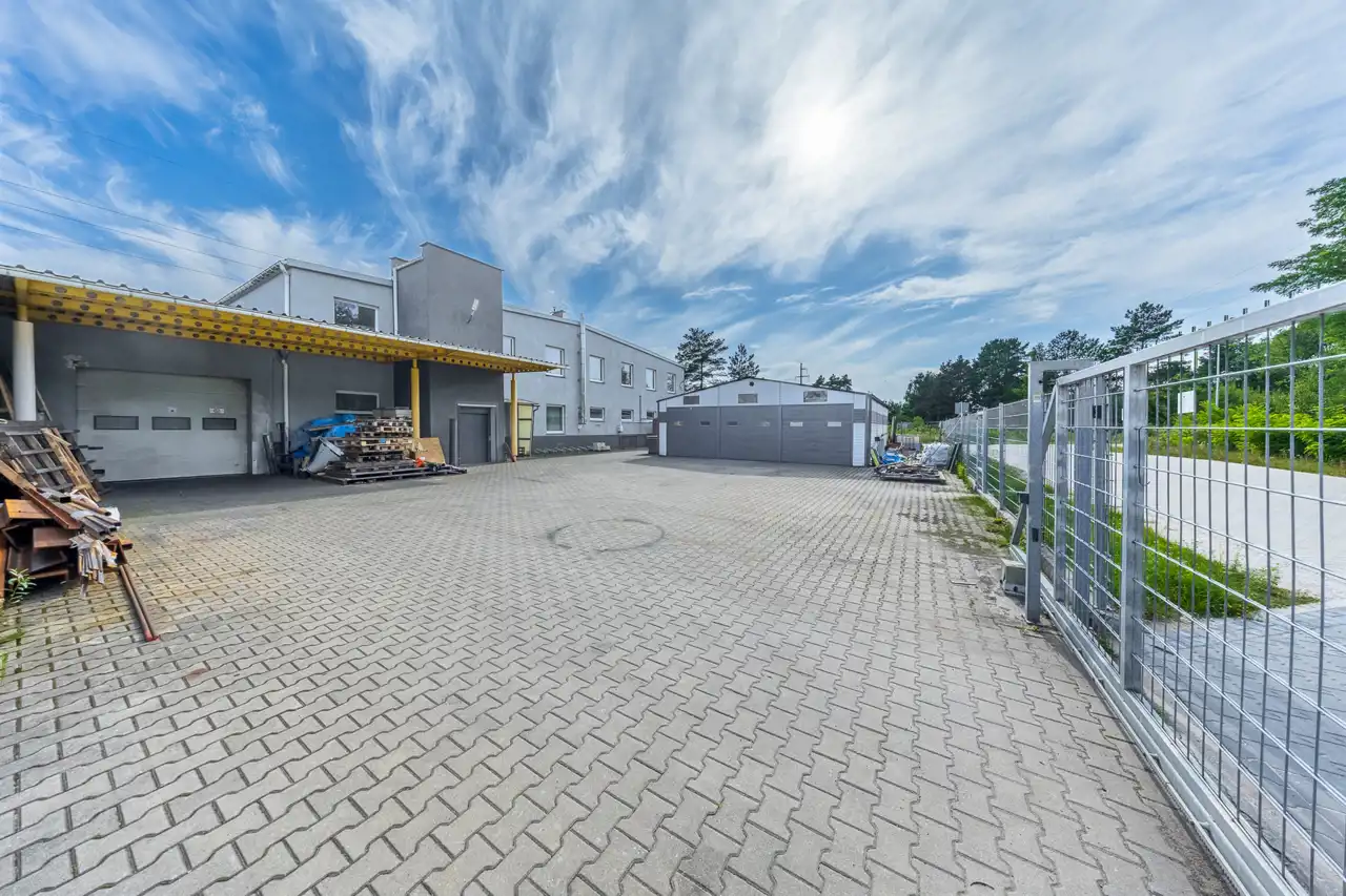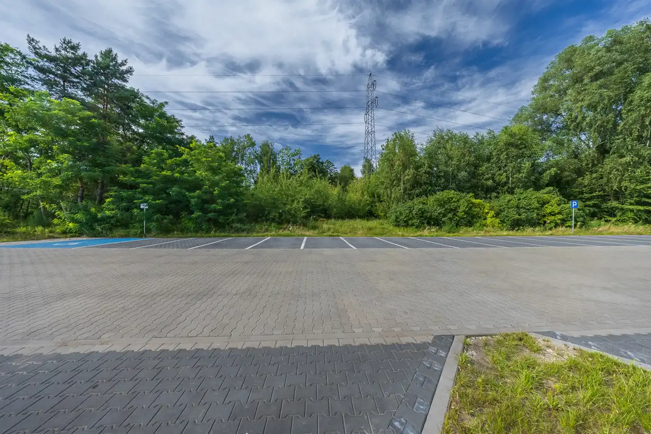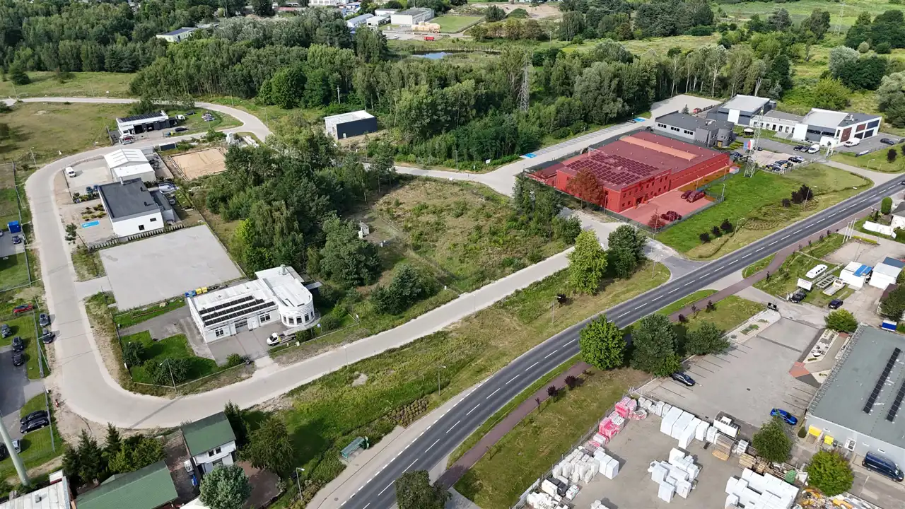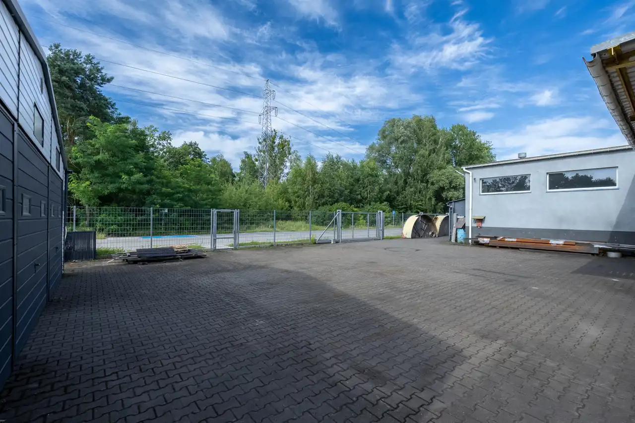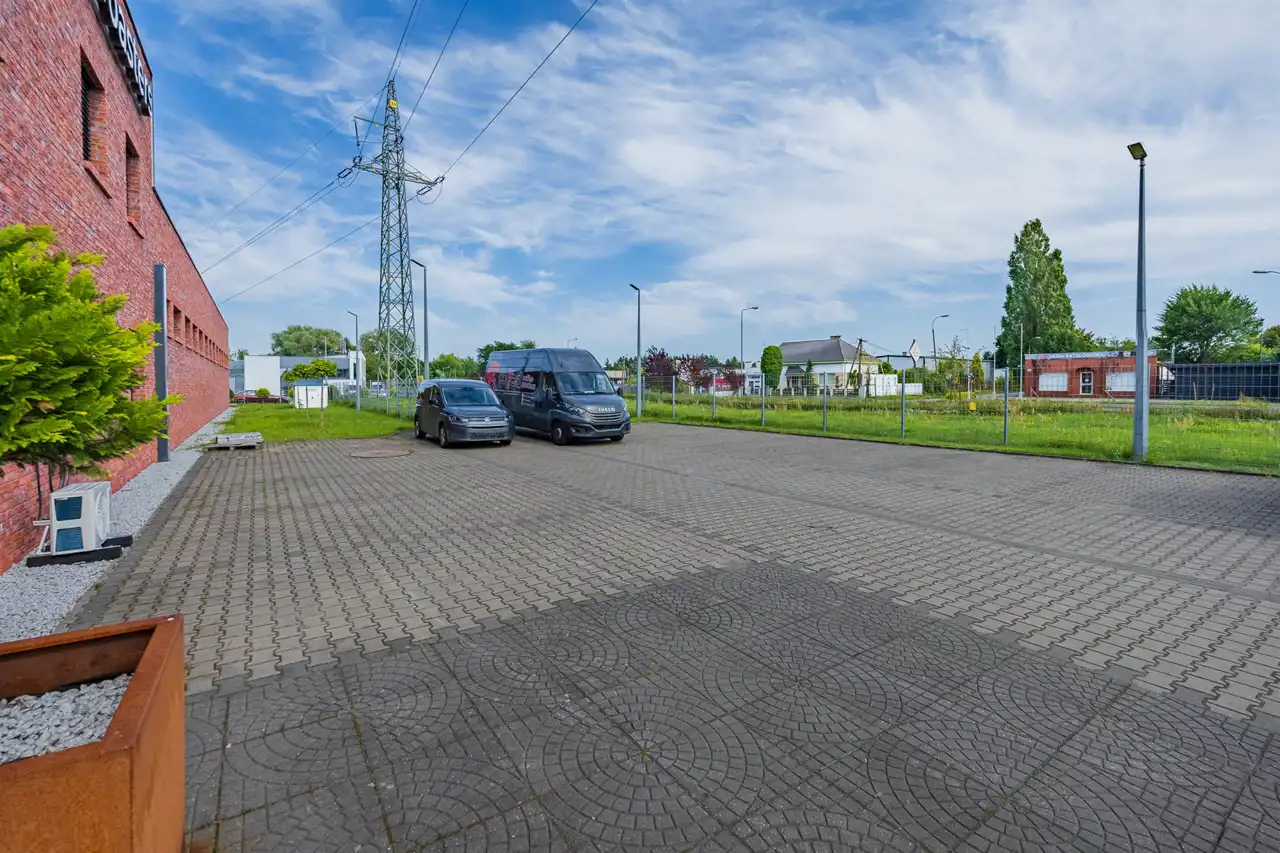 Przed bramą części produkcyjnej duży, utwardzony plac manewrowy z niezależną bramą wjazdową.
