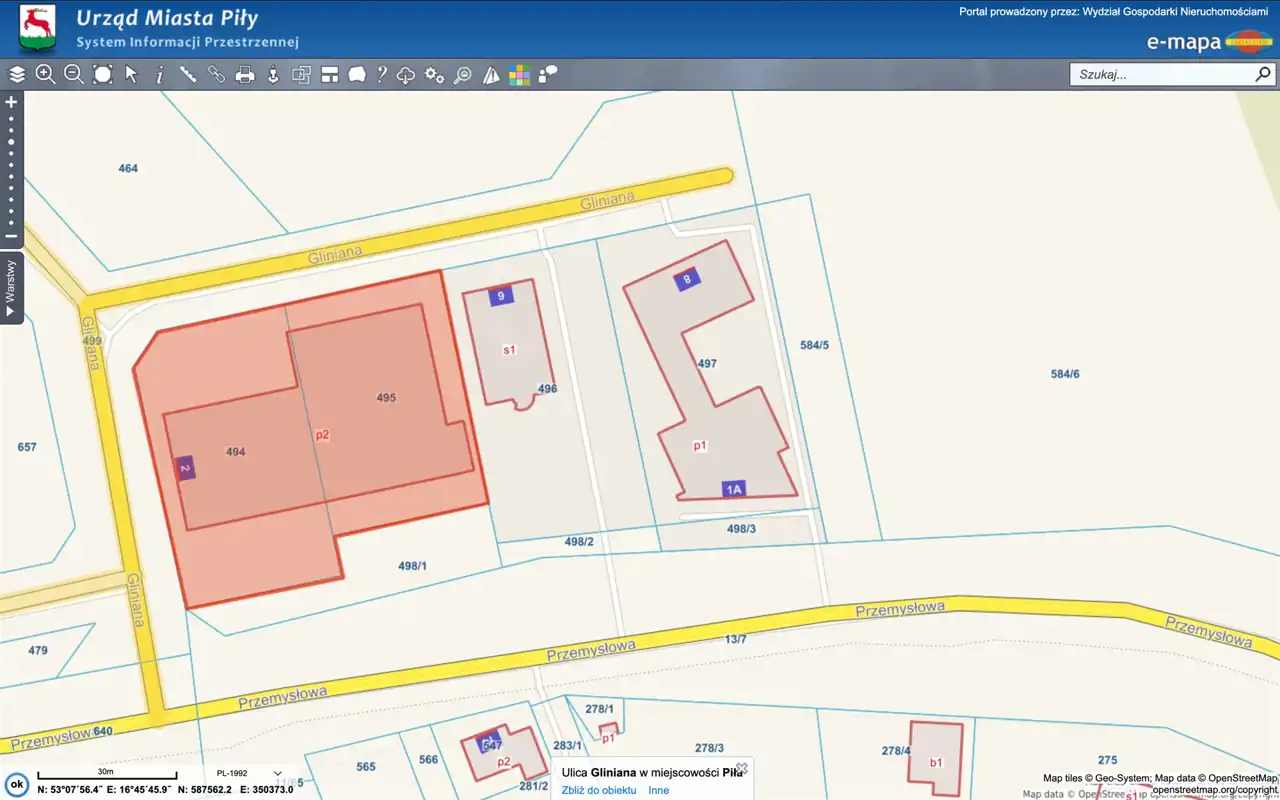 Piła, osiedle Staszyce, ul. Glinanna. Doskonałe położenie na terenach przemysłowych w sąsiedztwie innych firm z branż usługowo - produkcyjnych.