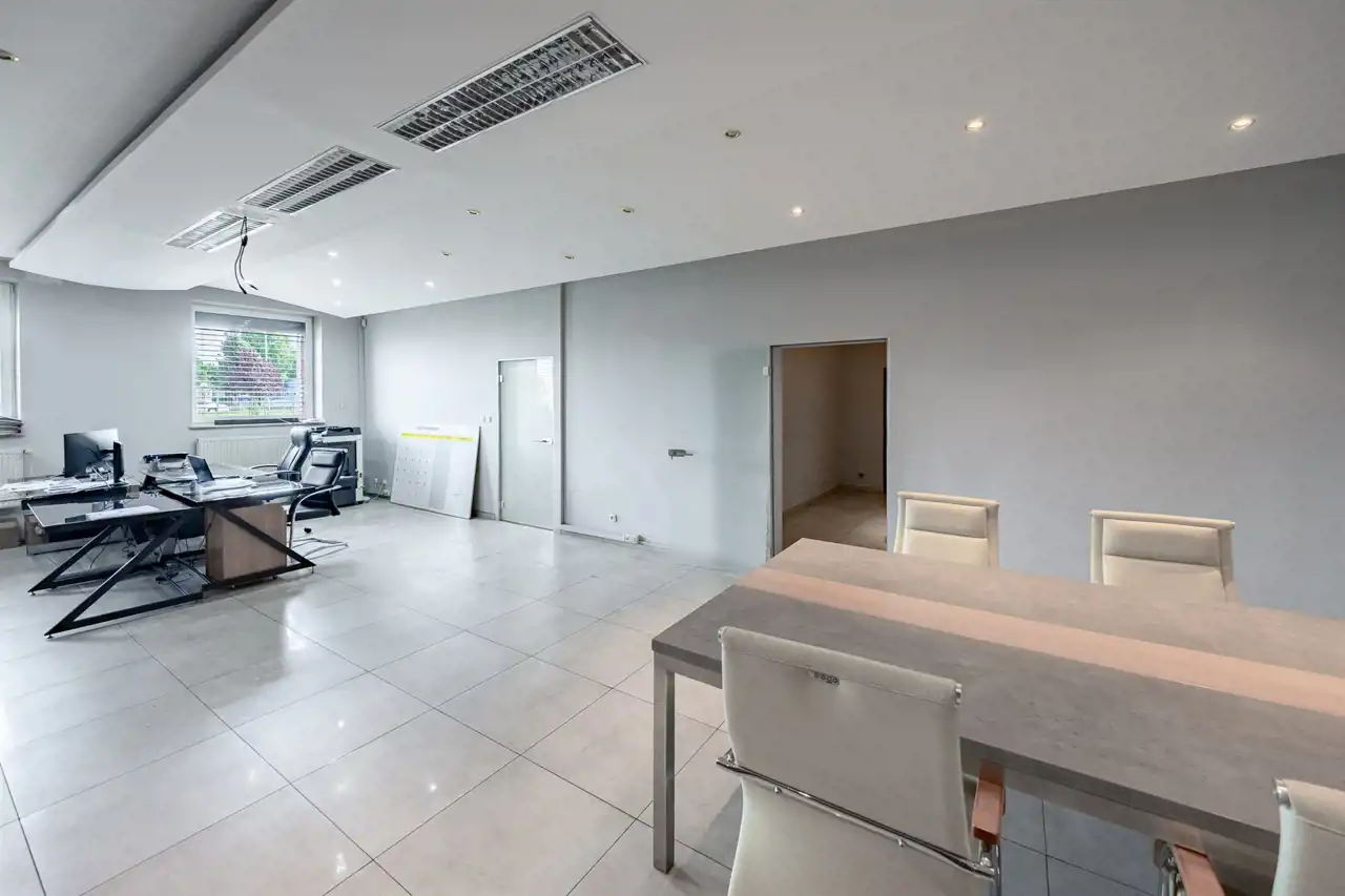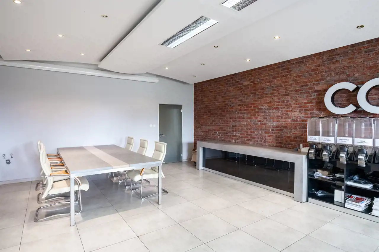 Pomieszczenia recepcji, gabinetu o pow. 47,60 m2, gabinetu zarządu o pow. 35,5 m2, pokoju spotkań o pow. 18,97 m2, sali konferencyjnej o pow. 18,87 m2, kuchni, WC, pomieszczenia biurowego o pow. 64,3 m2,