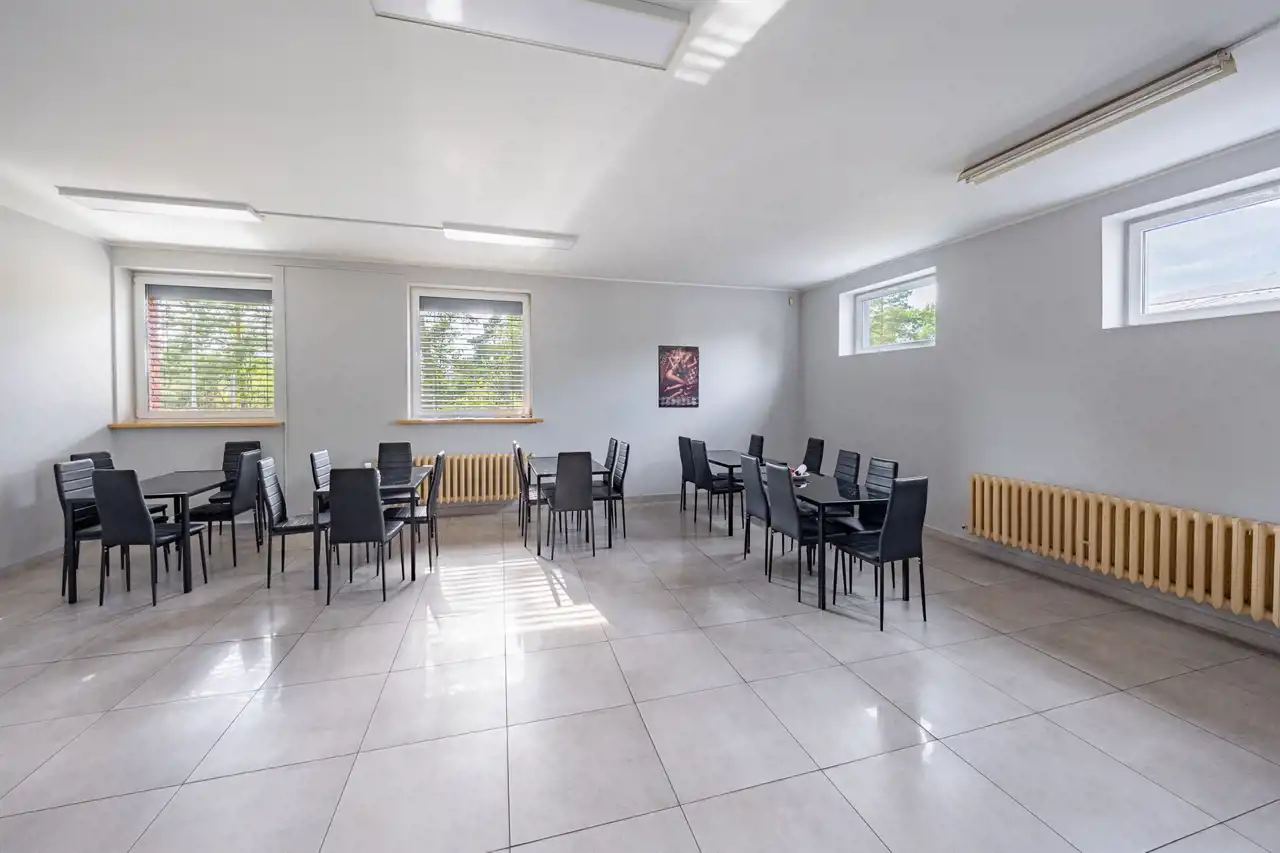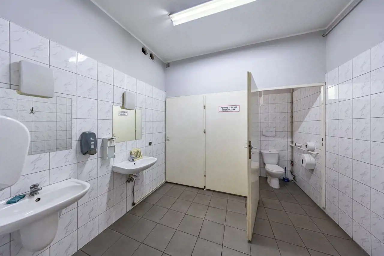 Pomieszczenia hali o pow. około 1 300 m2, pomieszczenia dwóch szatni męskich i szatni damskiej, kotłowni, pomieszczenia socjalne (kantyny).