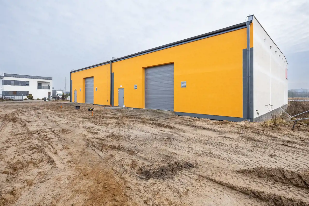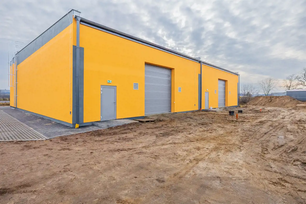 - Konstrukcja: część biurowo-socjalna dwukondygnacyjna, hala jednokondygnacyjna.