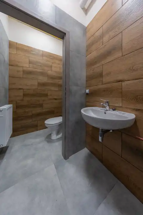 - Kompletne zaplecze socjalne: Kuchnia (8,2 m²), szatnia (9,9 m²), pomieszczenie gospodarcze (4,7 m²) łazienka (5,4 m²) oraz toalety (damska/męska).