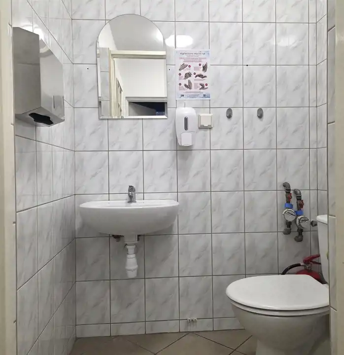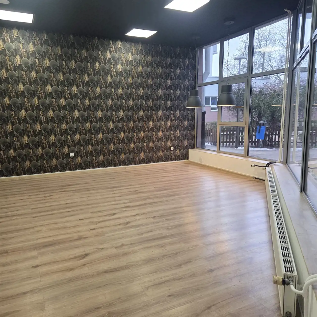 Główna sala o pow. 32,67m2, toaleta o pow. 1,53m2 + pomieszczenie socjalne