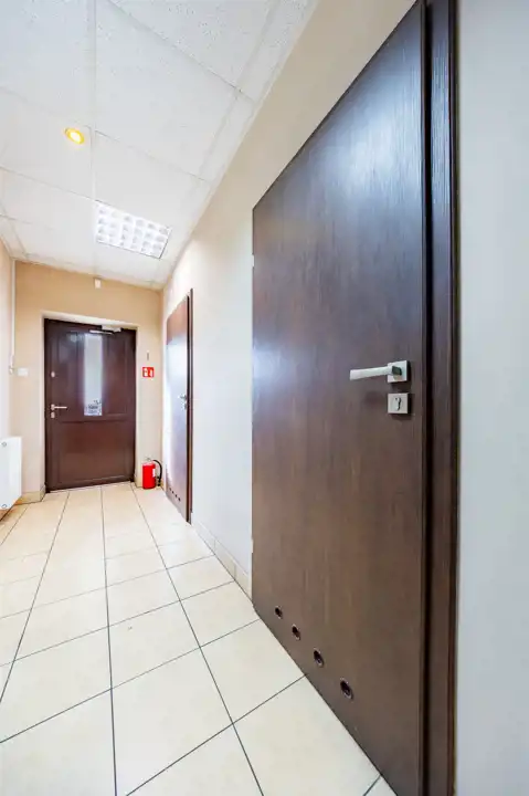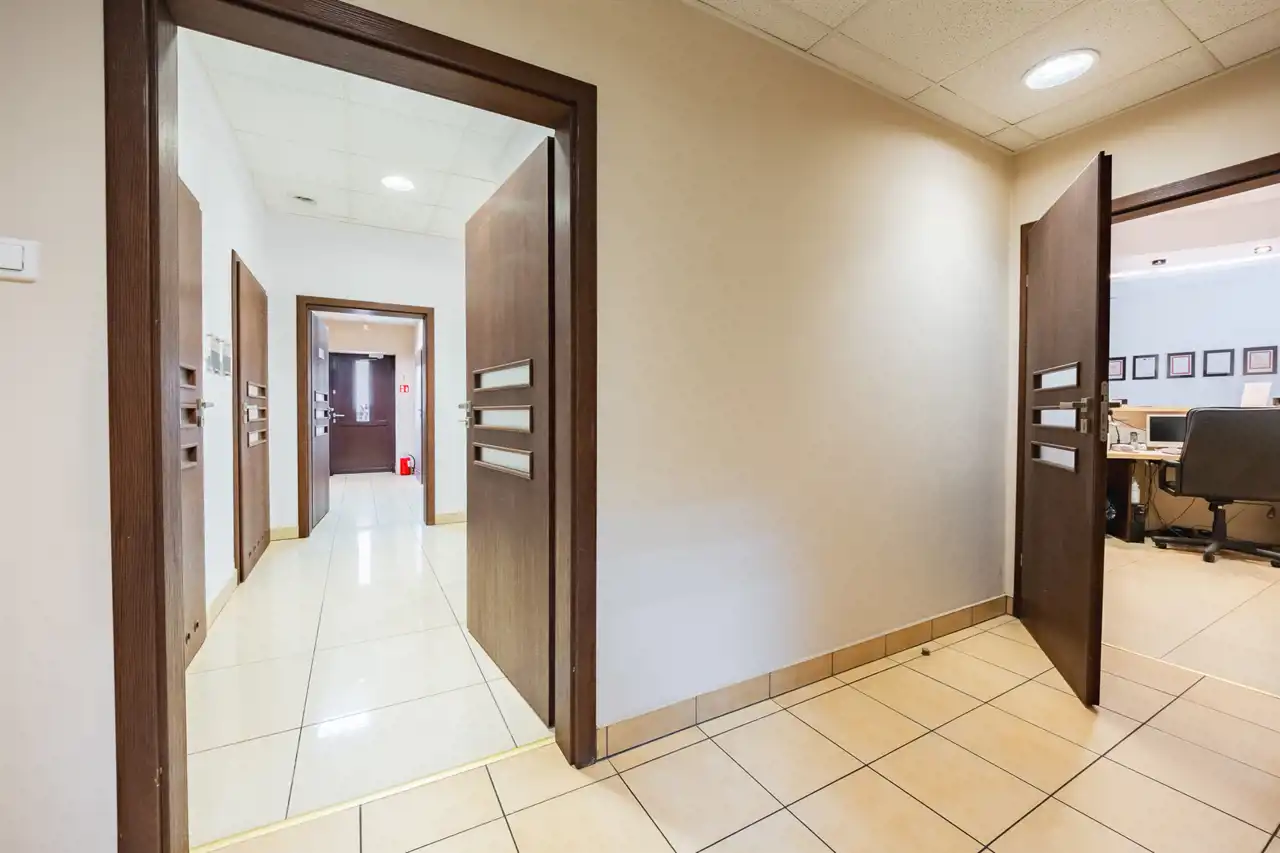 - Prywatny parking: bezpośrednio przed budynkiem, zapewnia miejsca postojowe i wygodę zarówno dla pracowników, jak i klientów.