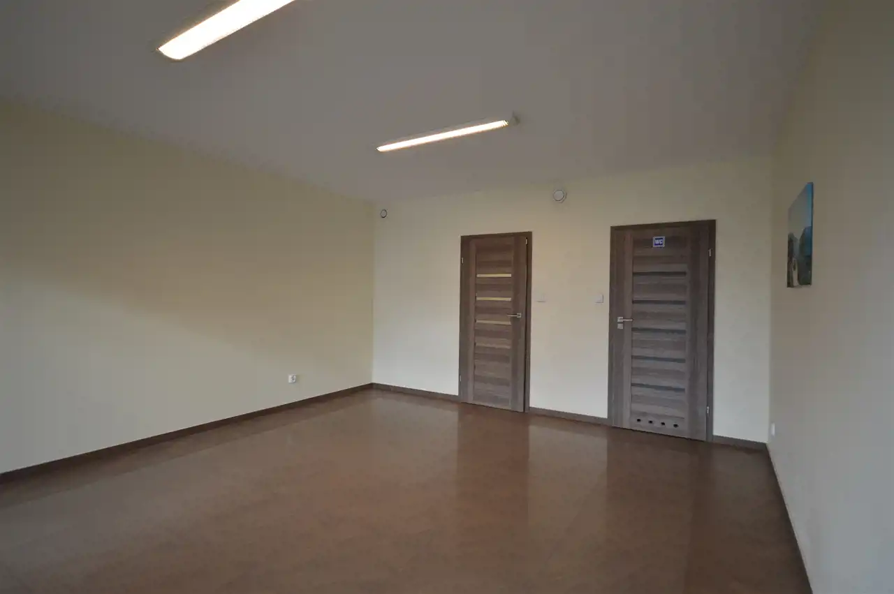 Lokal składa się z głównej sali o pow. 24m2, oraz pomieszczenia socjalnego pow. 4m2 i wc o pow. 2,5m2.