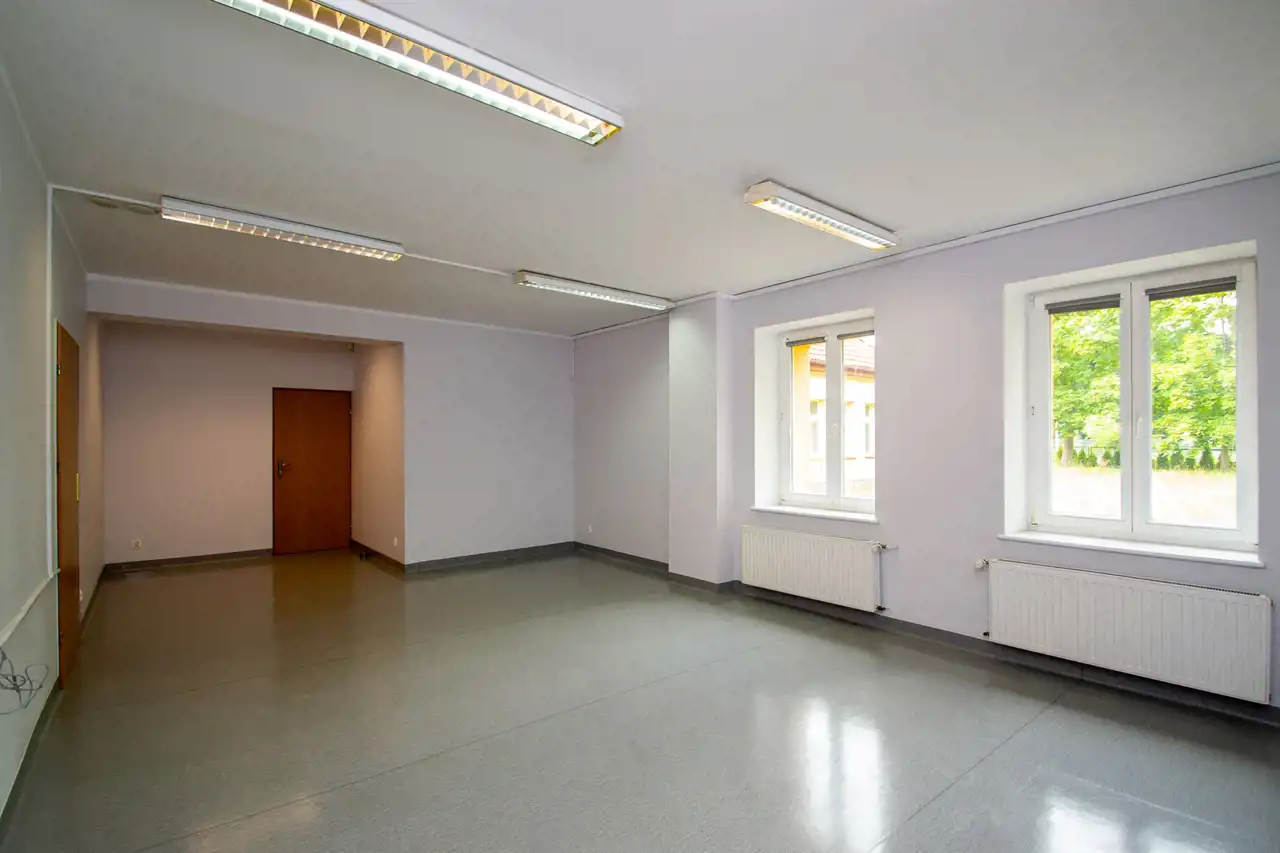 Dostępne są 3 pomieszczenia biurowe o powierzchniach od 27m2 do 42m2. Łączna powierzchnia do wynajęcia ok. 100m2.