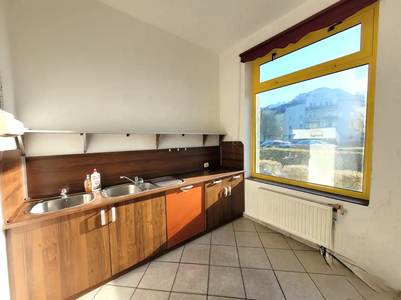 - POMIESZCZENIE zaplecza socjalnego, biurowego z dużym oknem o powierzchni 6,80 m.kw. obecnie zaaranżowano w nim kuchnię,