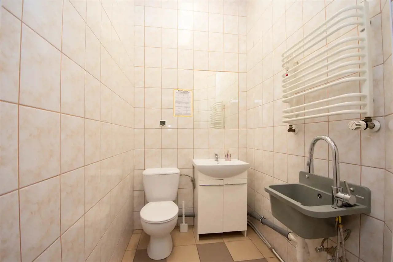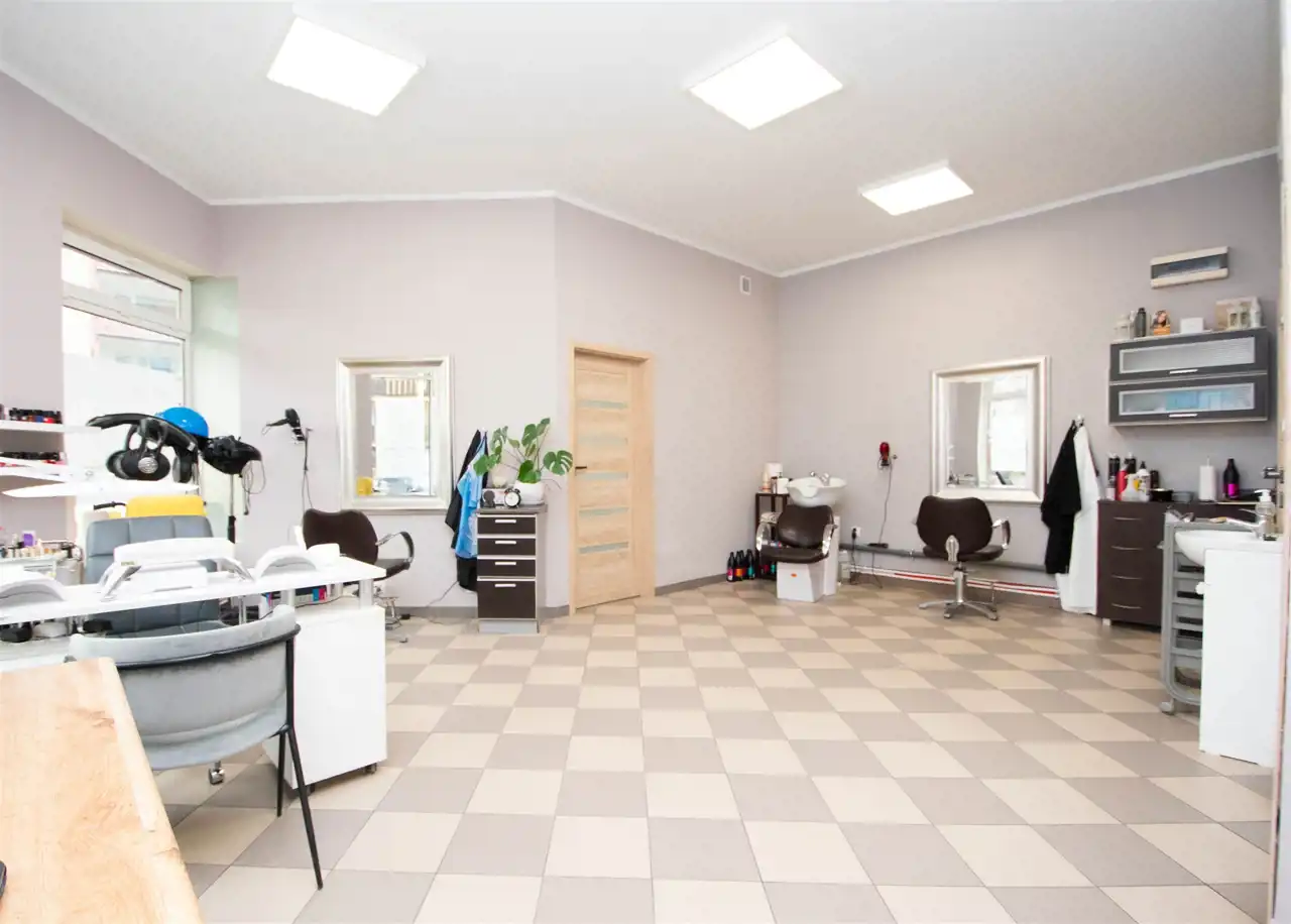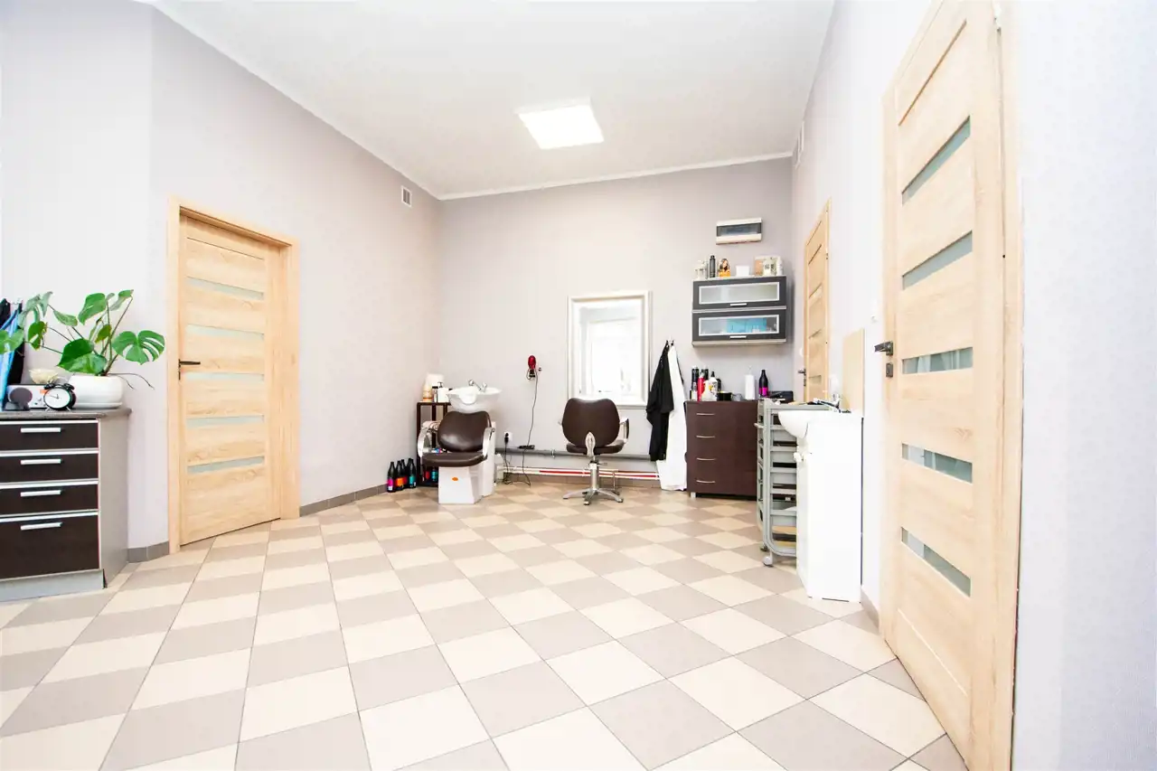 Obecnie lokal podzielony jest na dwa niezależne pomieszczenia, w których świadczone są usługi fryzjersko - kosmetyczne, jednak istnieje możliwość dostosowania układu do potrzeb przyszłego najemcy.