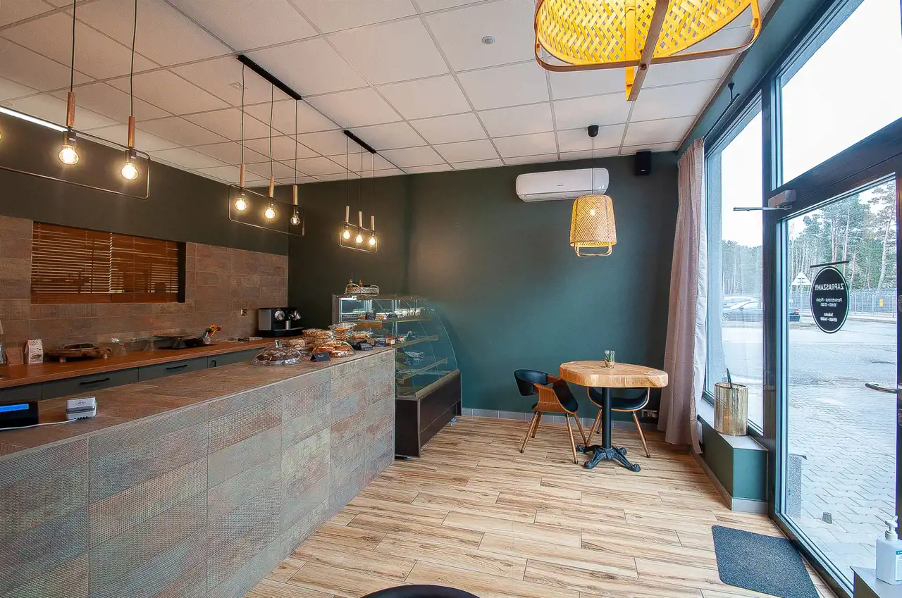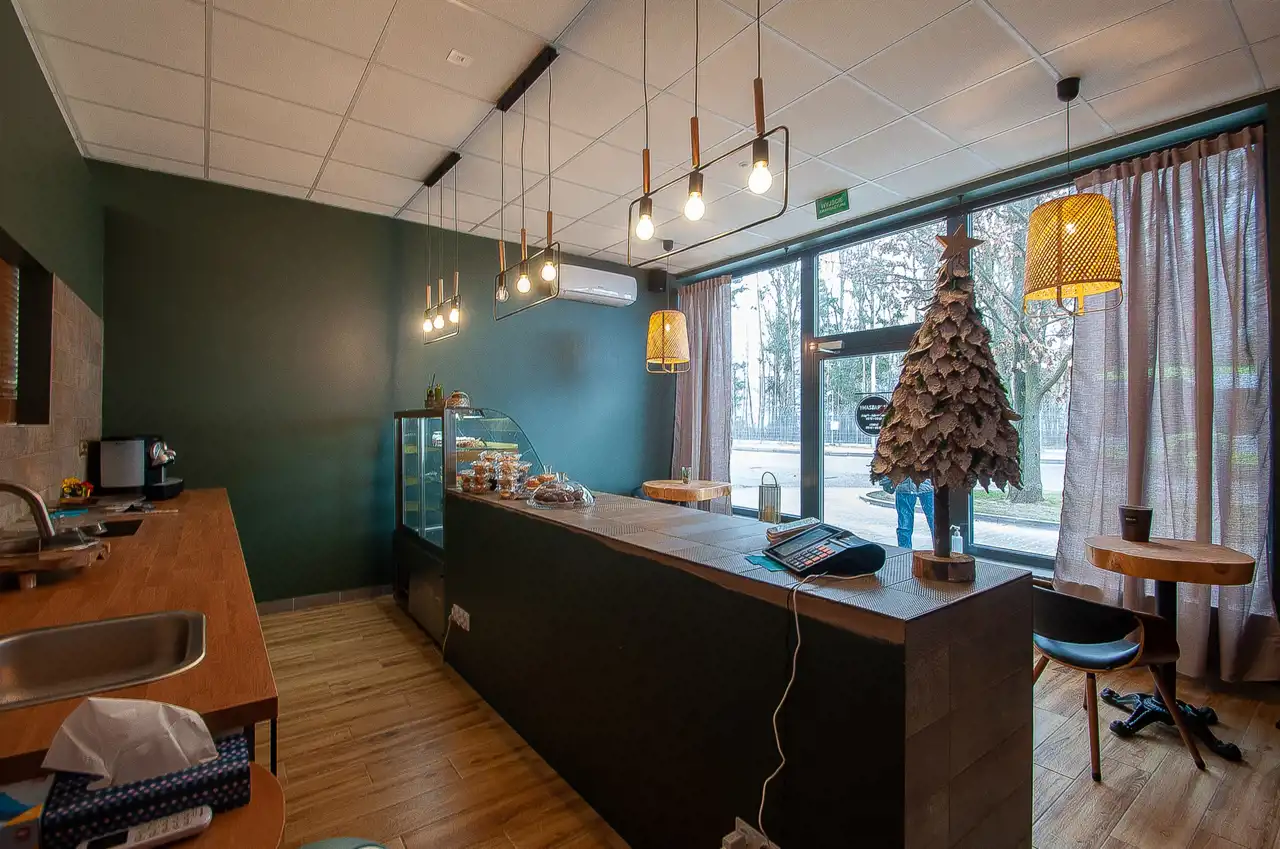 Sala sprzedaży o pow. 26m2, dodatkowo zaplecze wraz pomieszczeniem sanitarnym