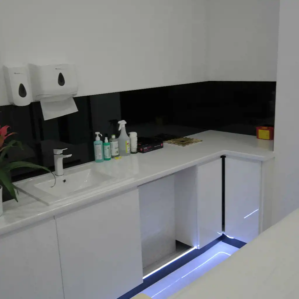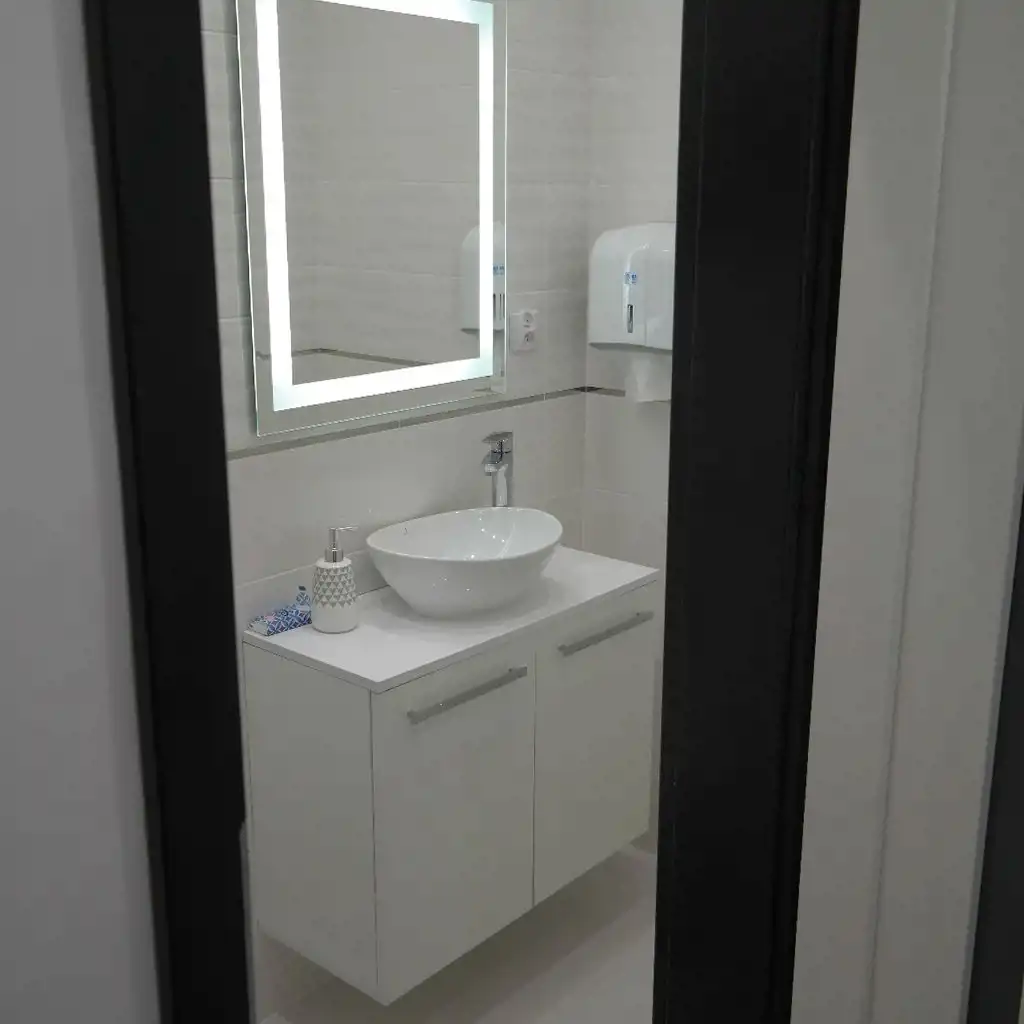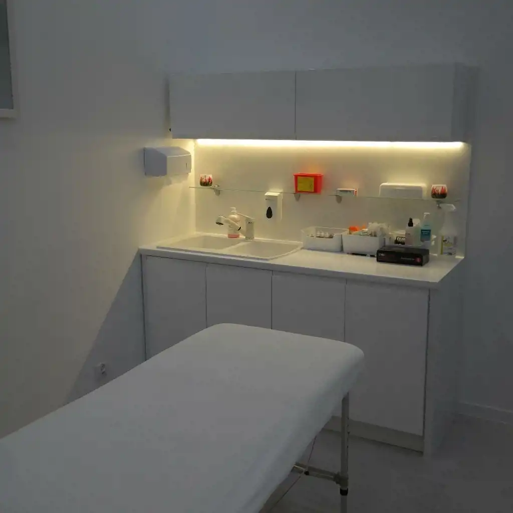 - 3 oddzielne pomieszczenia (gabinety), każdy z umywalką w zabudowie,