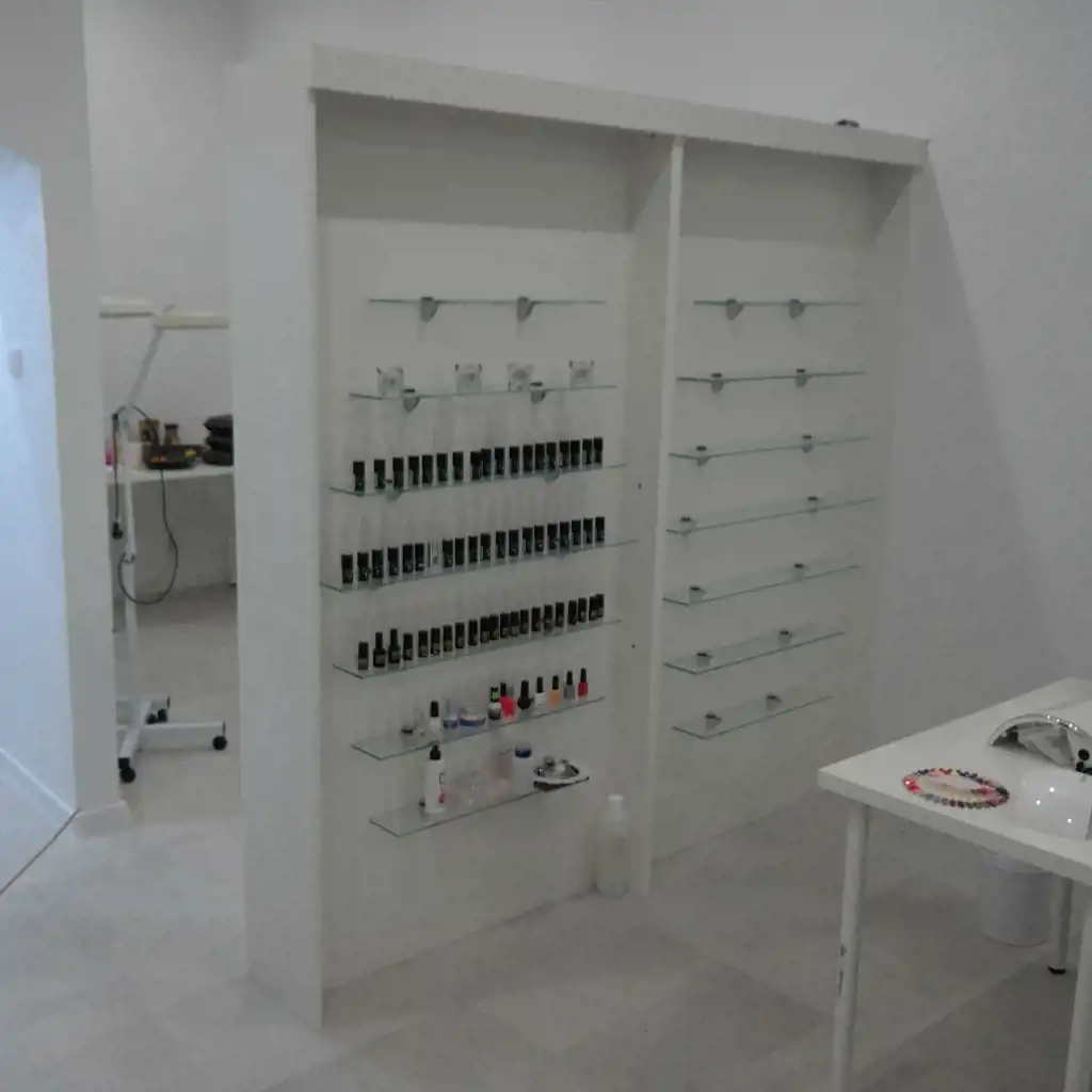 Recepcja posiada wmontowany telewizor na którym można wyświetlać ofertę dla klientów siedzących w poczekalni.