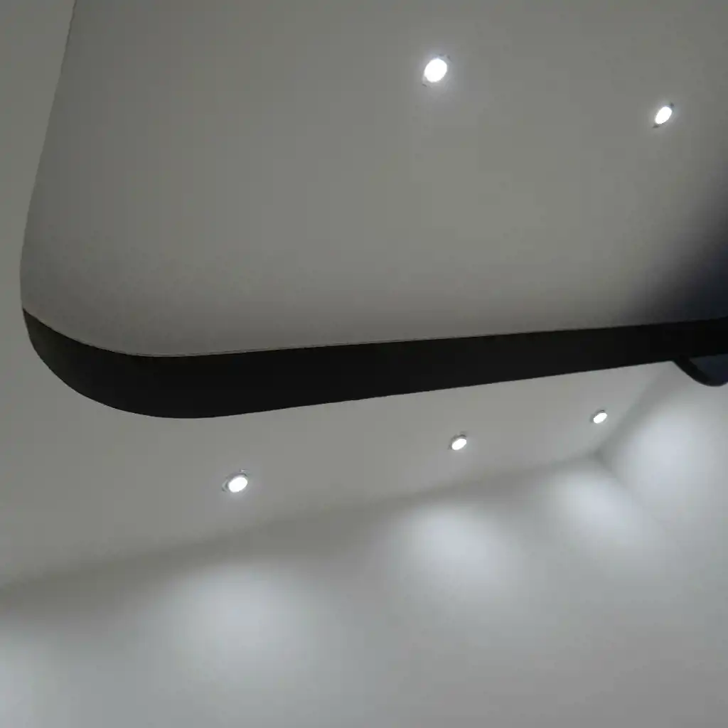 W całym lokalu są zamontowane głośniki w suficie, a także sufit jest podświetlany ledami
