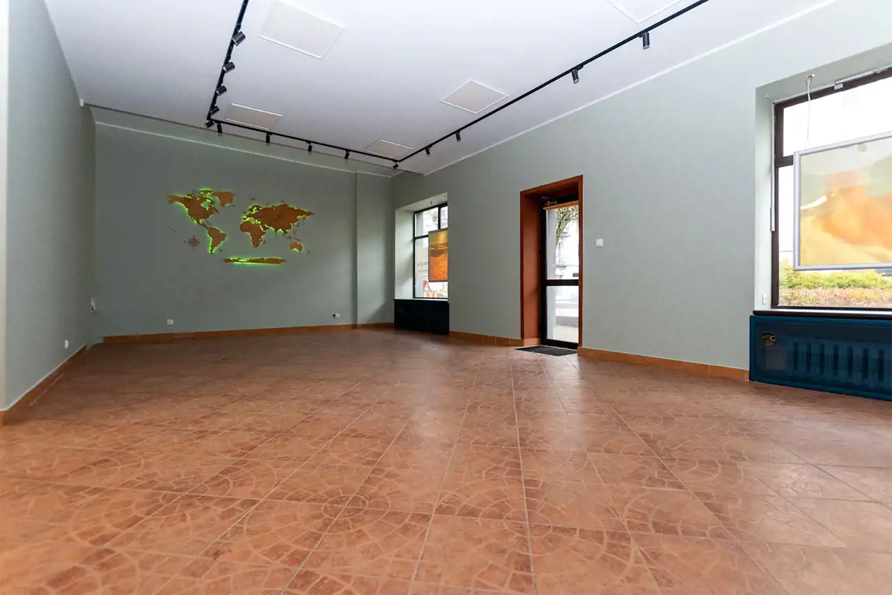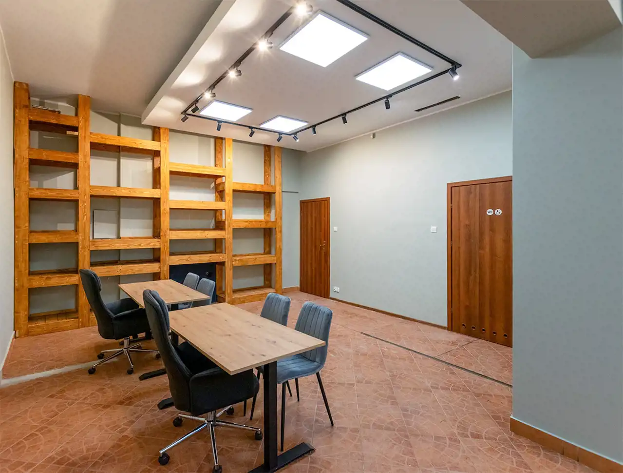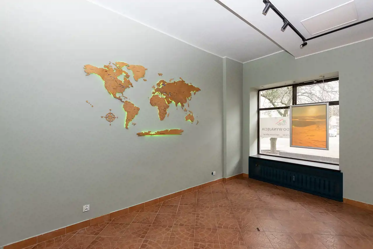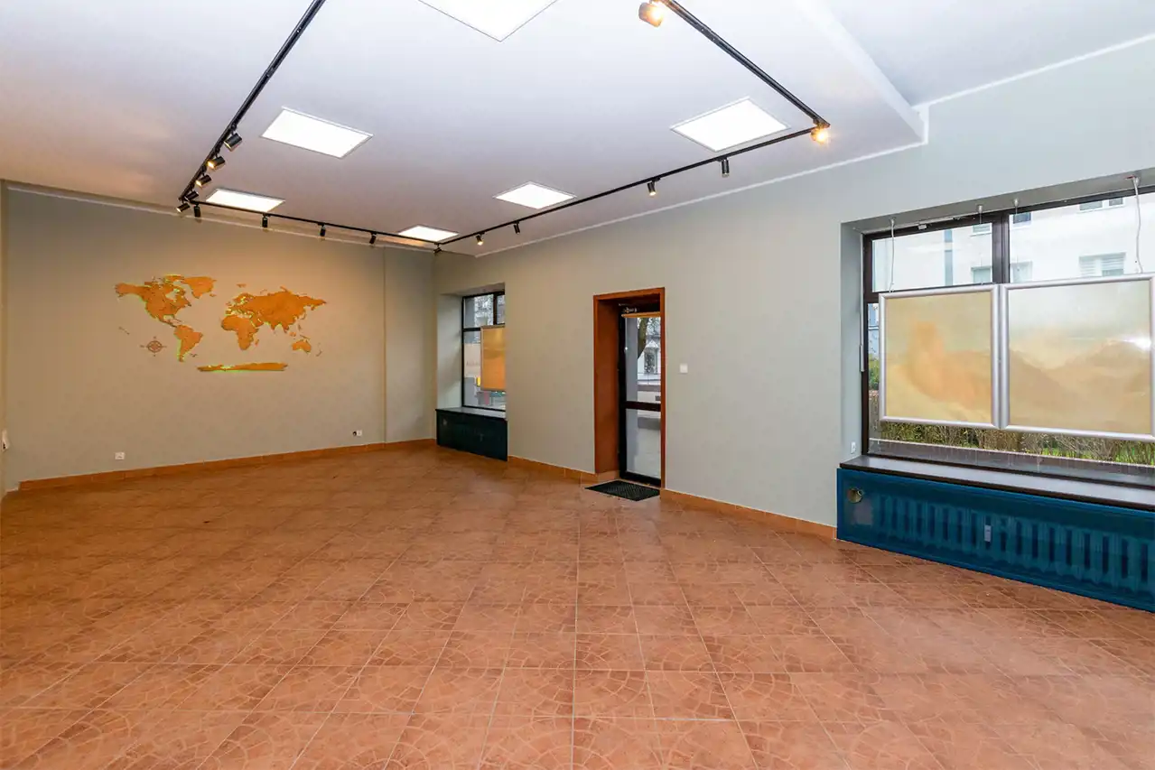 Lokal jest wynajmowany bez mebli, co umożliwia dowolną aranżację przestrzeni.