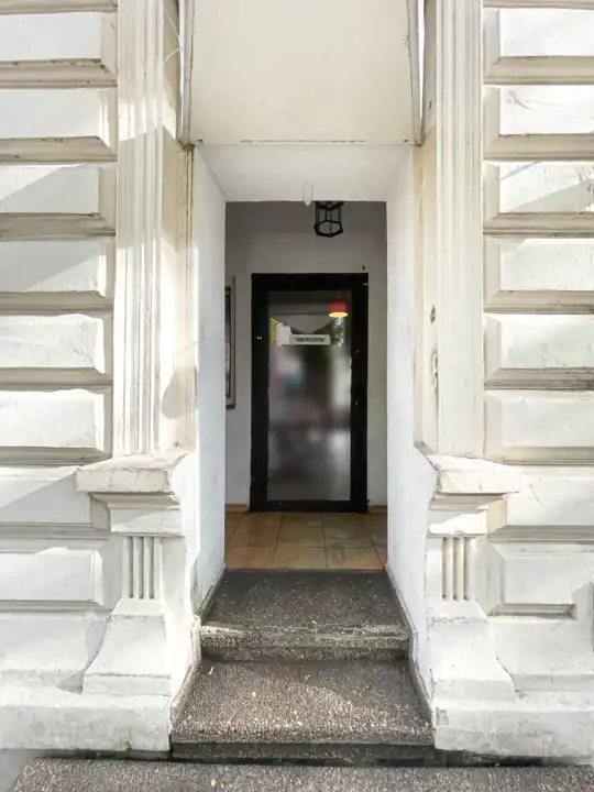 Dwa wejścia – główne od strony ulicy i drugie od zaplecza (od klatki schodowej)