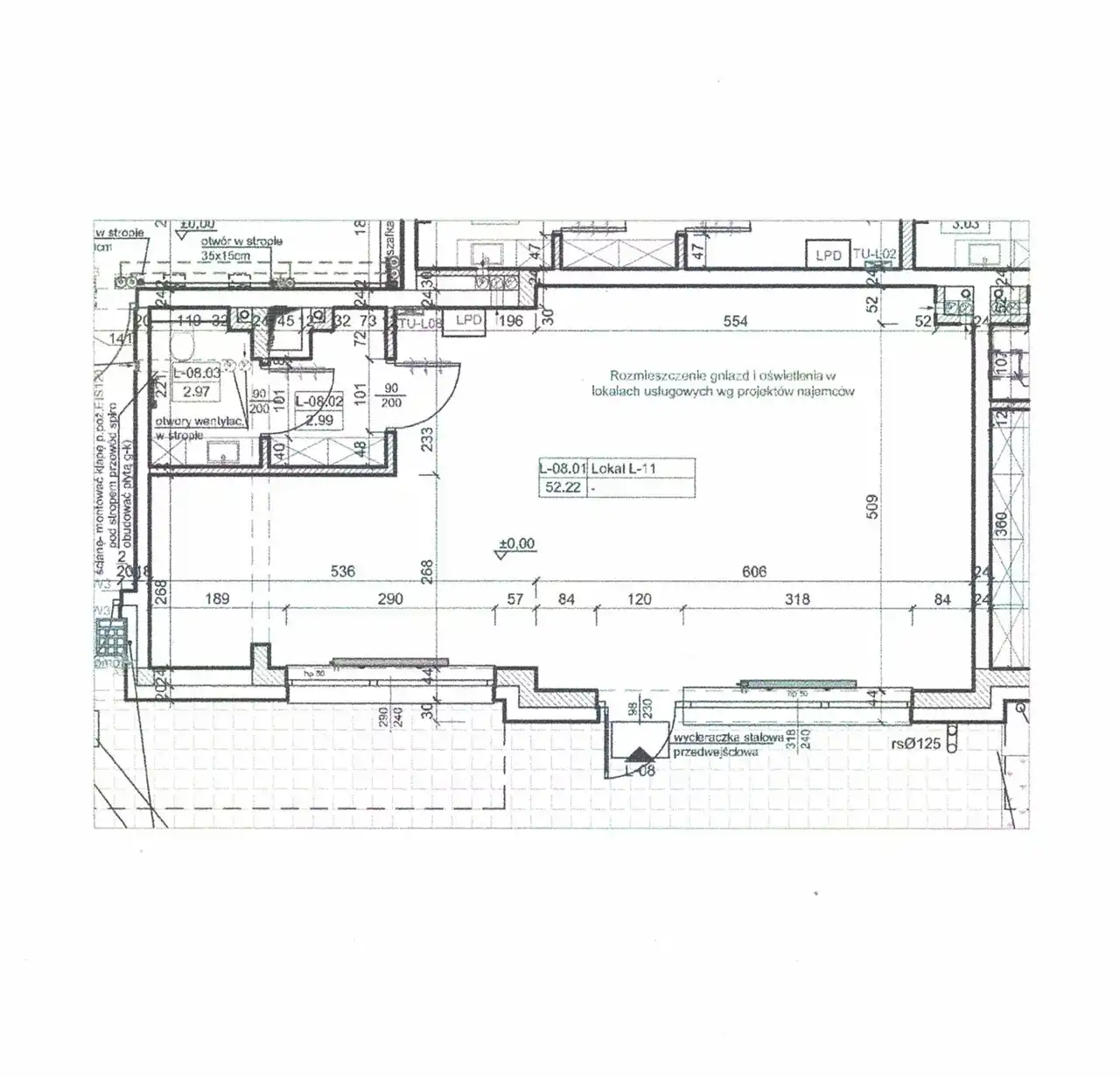 Lokal obecnie jest w stanie deweloperskim, może zostać zaaranżowany i wykończony pod potrzeby Twojej działalności przez właściciela.