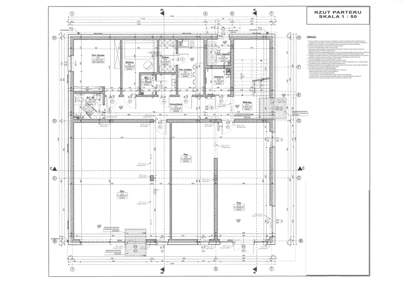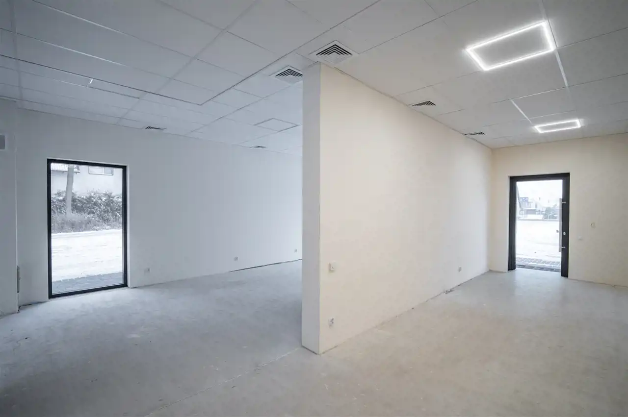 Powierzchnia parteru została podzielona na dwa niezależne lokale handlowe, każdy z rozbudowanym zapleczem socjalno-biurowym. Do dyspozycji są dwie osobne łazienki oraz szatnia.