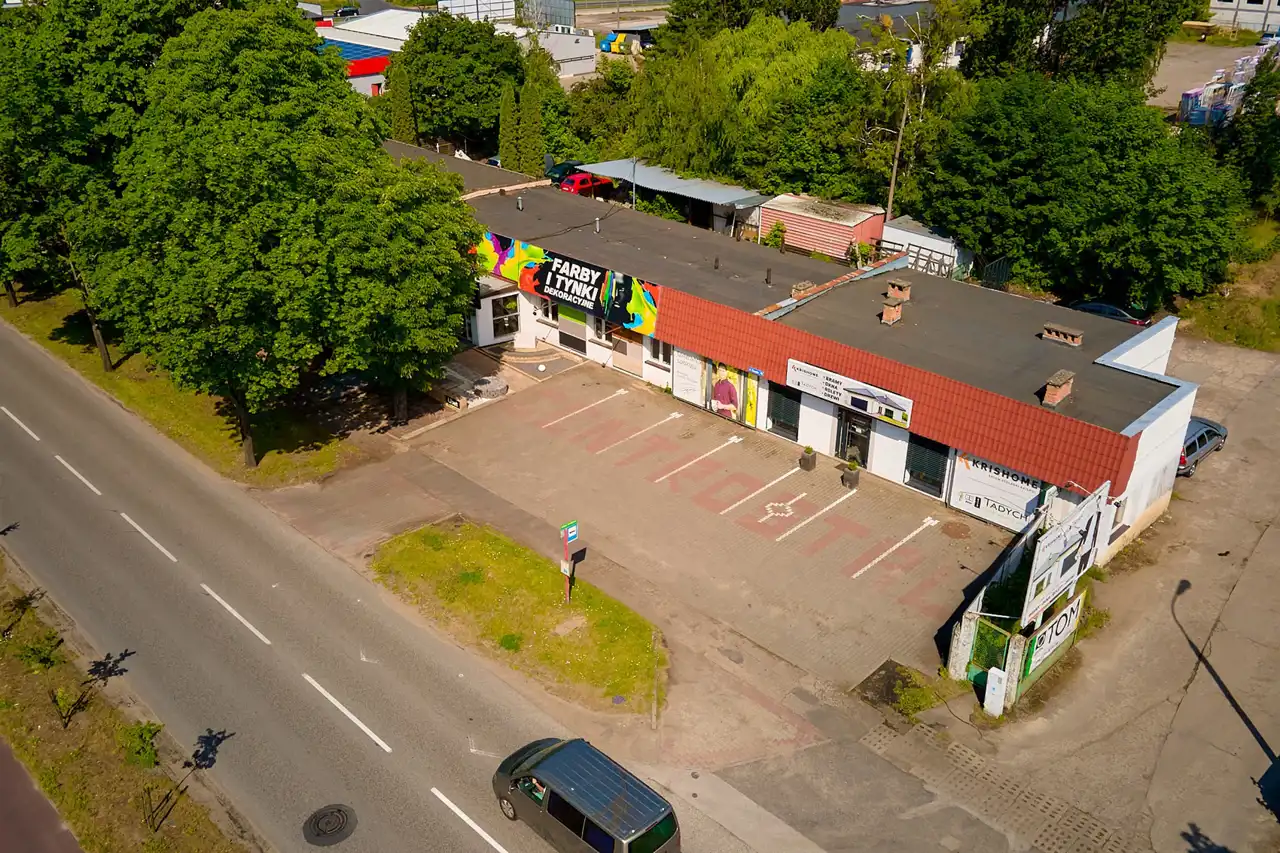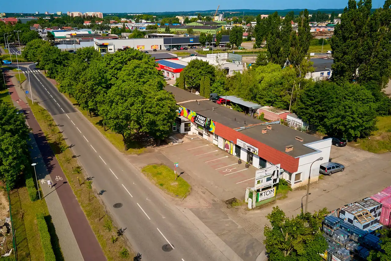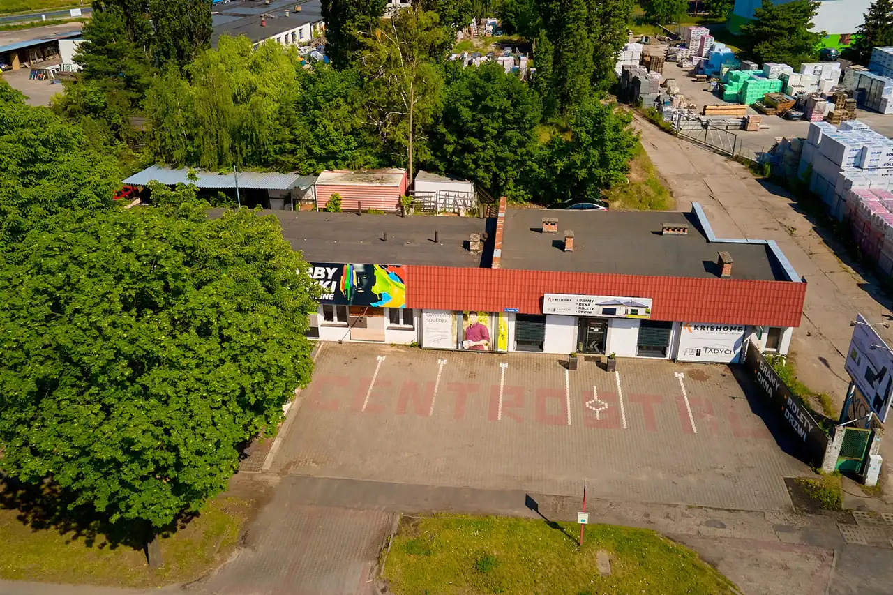 Aktualnie obiekt podzielony jest na 4 lokale. Posiada miejsca parkingowe dla klientów od frontu budynku. Za obiektem dodatkowy parking z dojazdem na całej długości budynku a jako, że każdy z lokali posiada tylne wejście, stanowi to dodatkowy atut, gdyż ułatwia korzystanie z obiektu a także daje możliwość dokonywania rozładunków towaru bez ograniczania dostępności dla potencjalnych klientów.