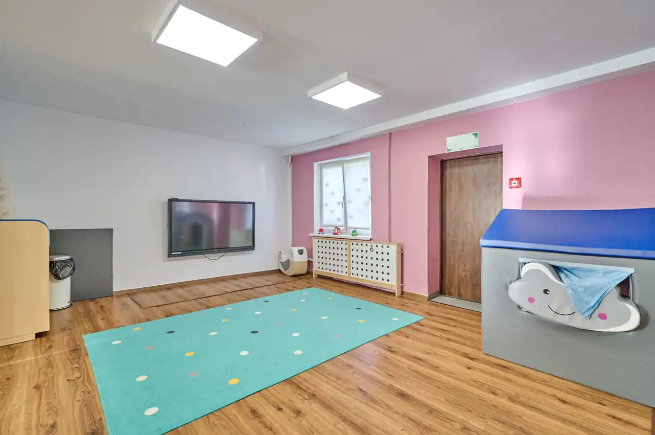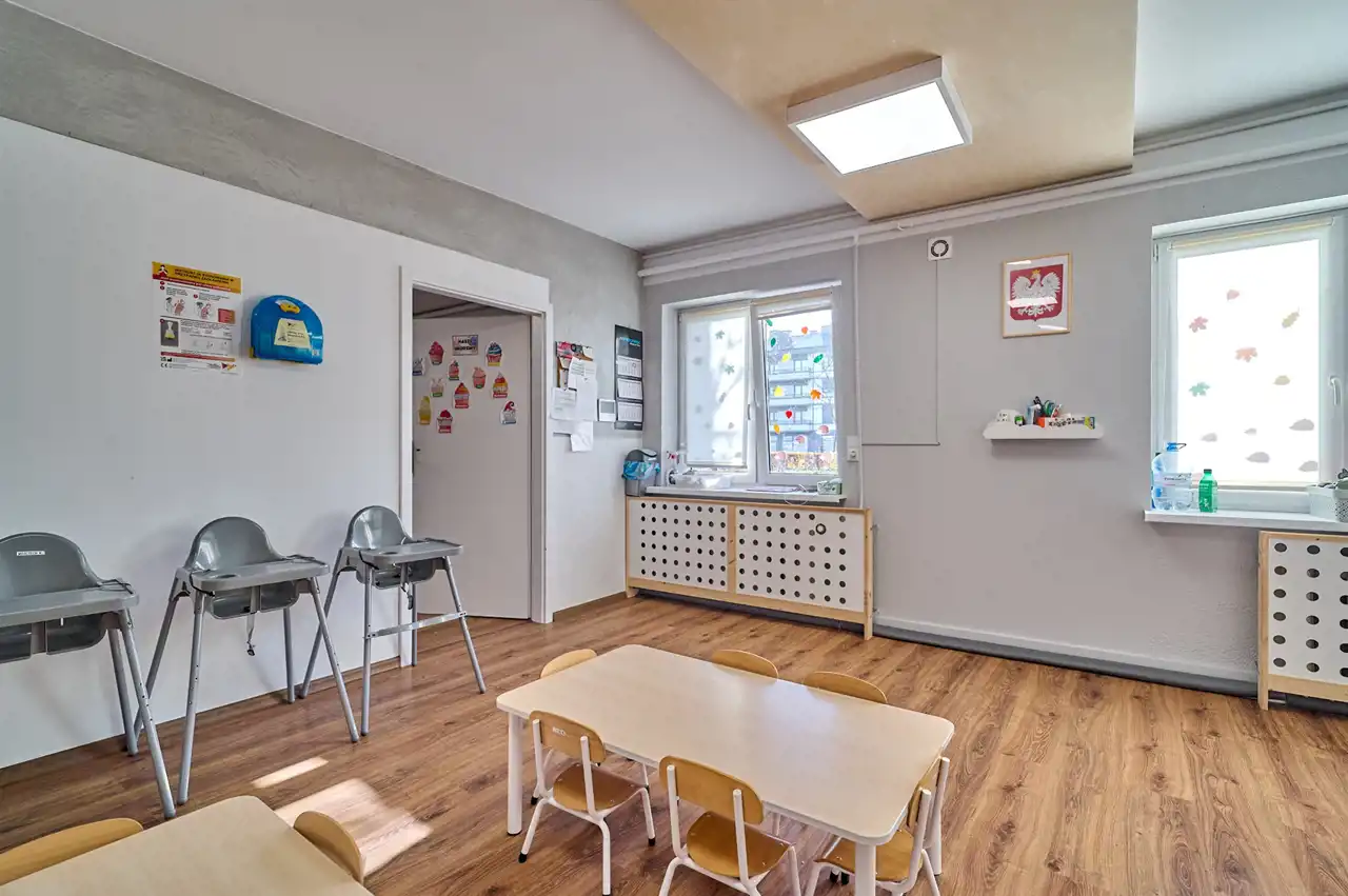 Aktualnie w lokalu funkcjonuje jeszcze prywatny żłobek, więc lokal dostosowany jest idealnie pod tego typu działalność.