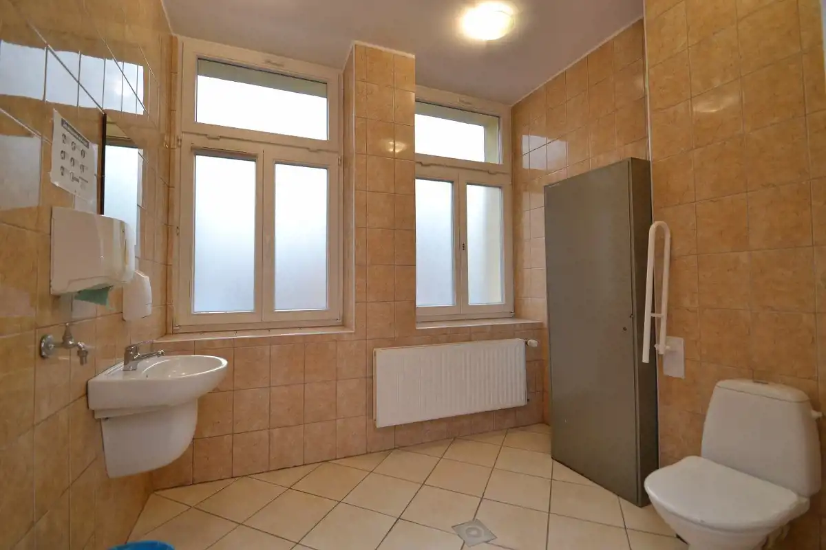 Do dyspozycji najemcy pozostaje zaplecze sanitarne, sześć toalet, łazienka z kabiną prysznicową oraz aneksy kuchenne zlokalizowane na każdej kondygnacji.