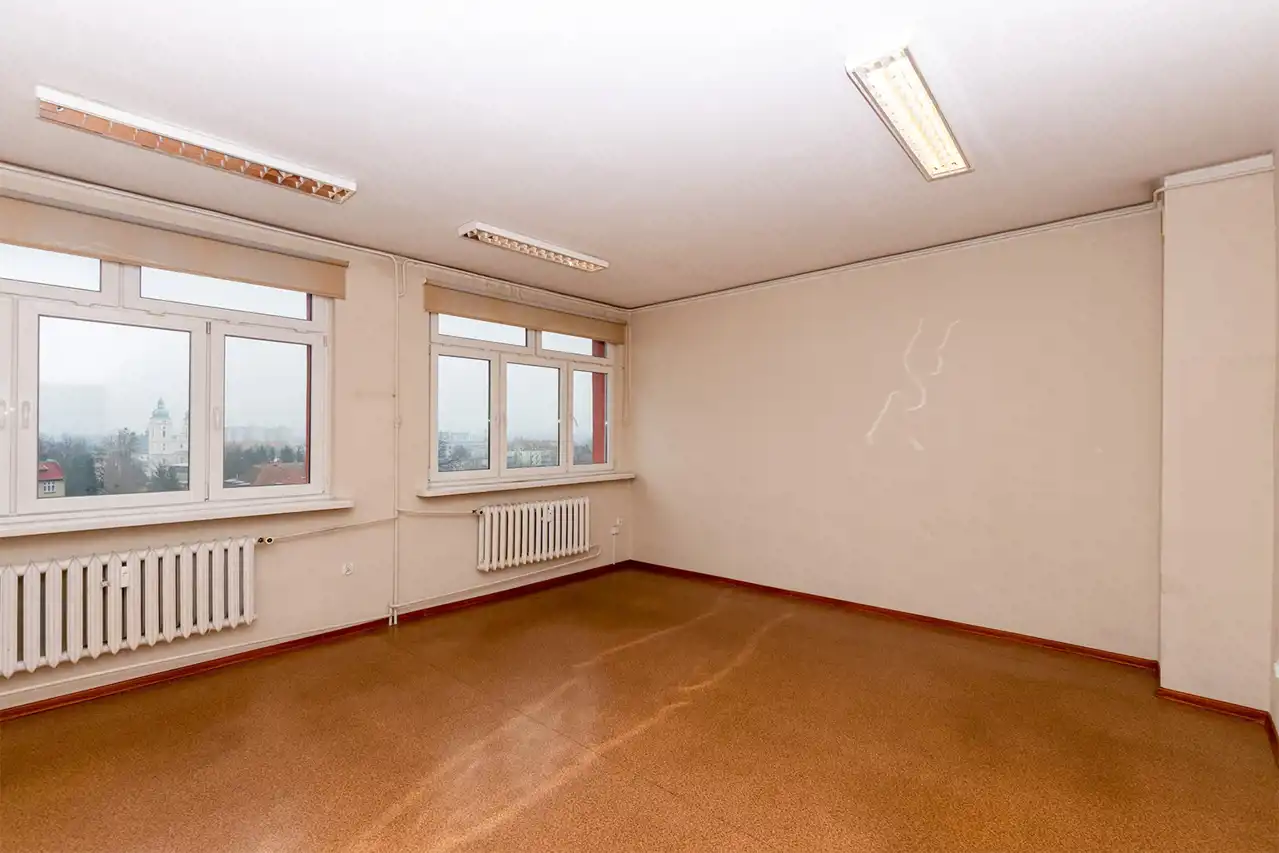 Do wynajęcia lokal użytkowy o powierzchni 28,25 m², zlokalizowany na szóstym piętrze budynku przy ul. Sikorskiego 33, będącego siedzibą Pilskiej Spółdzielni Mieszkaniowej Lokatorsko-Własnościowej.
