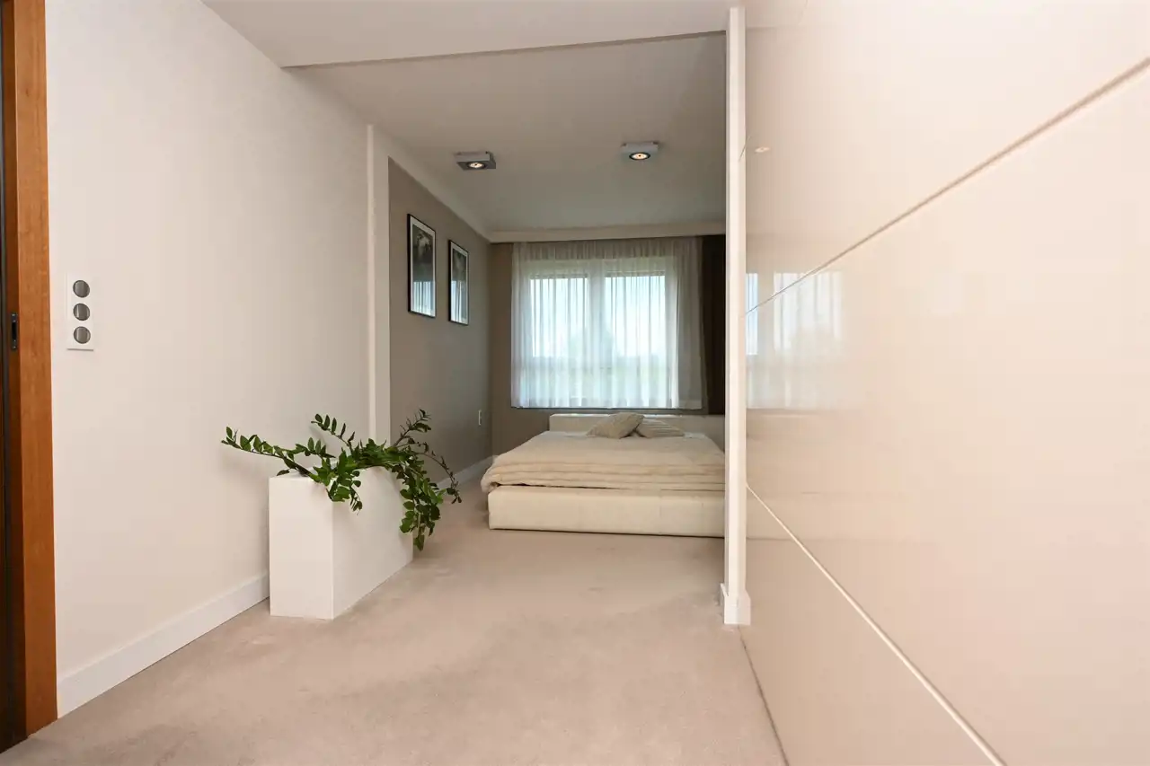 Strefa sypialniana została zaprojektowana jak luksusowy apartament hotelowy — zapewniając maksymalny komfort, prywatność i spójność stylistyczną.