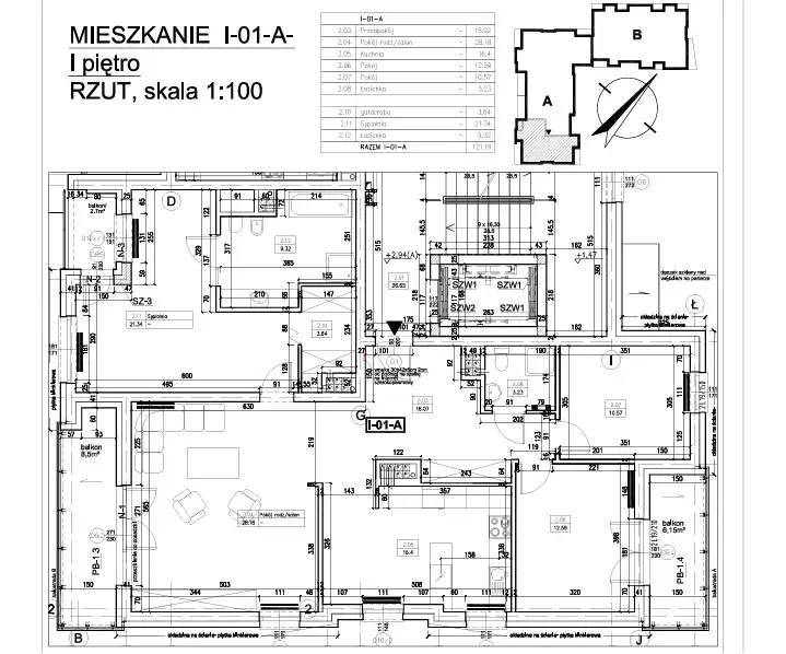 - Charakterystyka mieszkania 121.19 m2, 4 pokoje