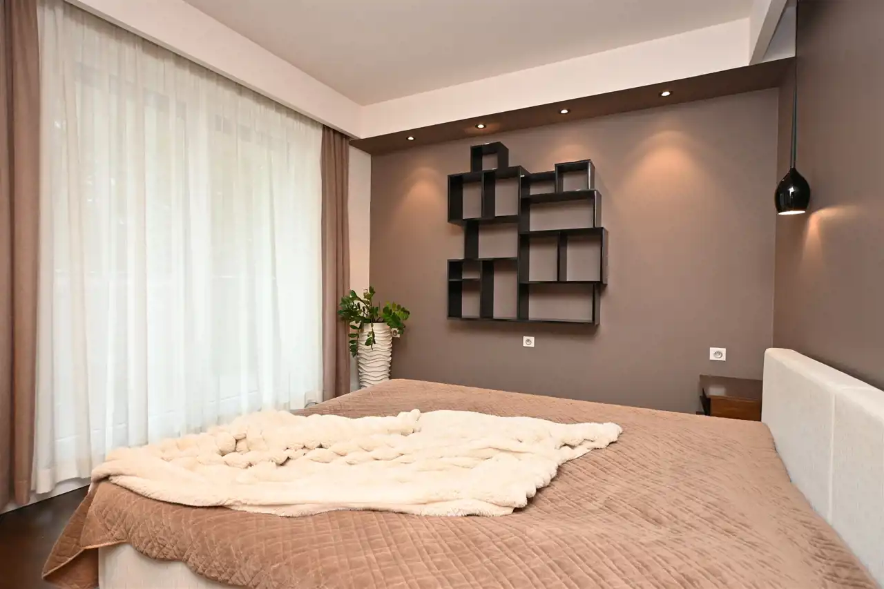 Mieszkanie wyróżnia się nowoczesnym, spójnym designem i wysoką jakością wykończenia. Wszystkie meble wykonane zostały na indywidualne zamówienie, co zapewnia maksymalne wykorzystanie przestrzeni oraz estetyczny, harmonijny wygląd wnętrz.