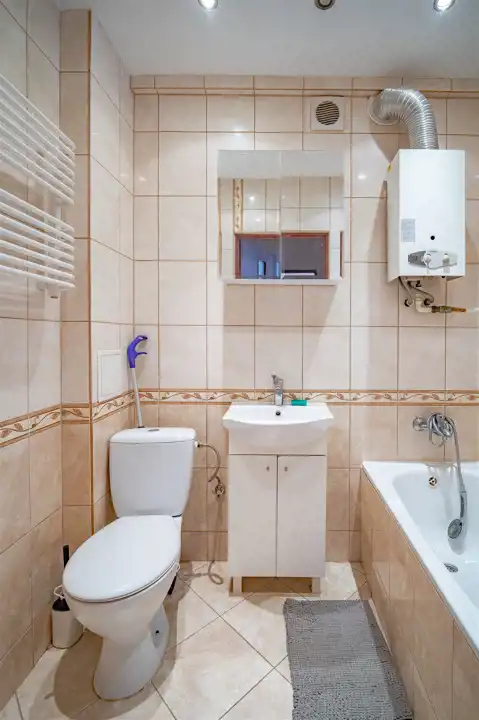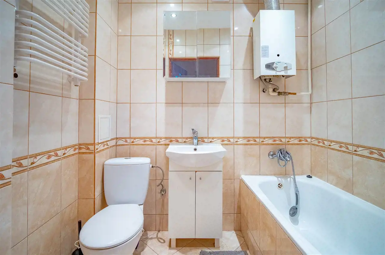 - Media Ogrzewanie: C.O. miejskie; Woda: ciepła - piecyk gazowy; Gaz: jest