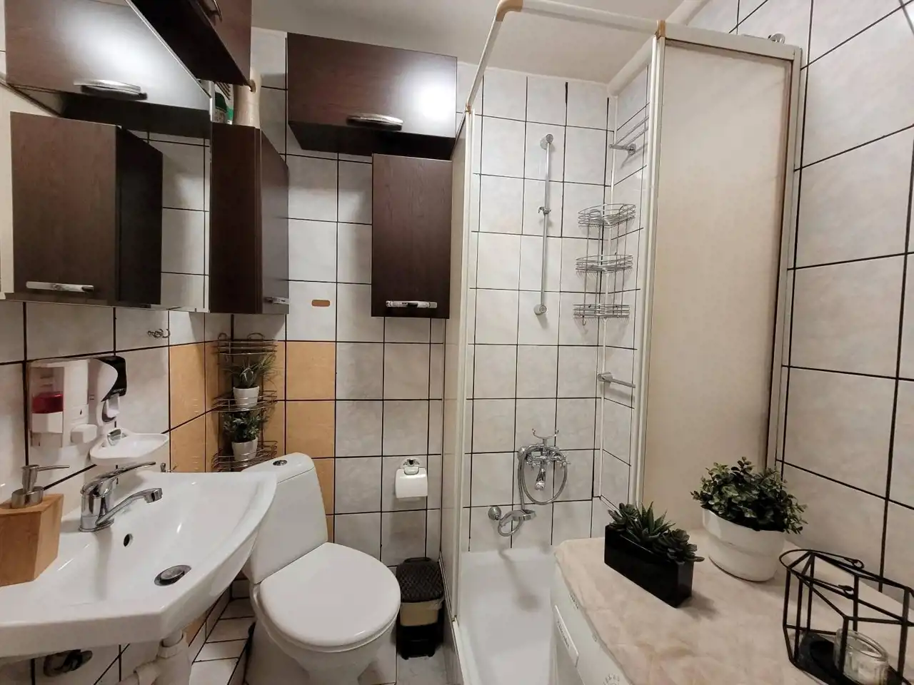 - Media Ogrzewanie: C.O. miejskie; Woda: ciepła - piecyk gazowy; Gaz: jest