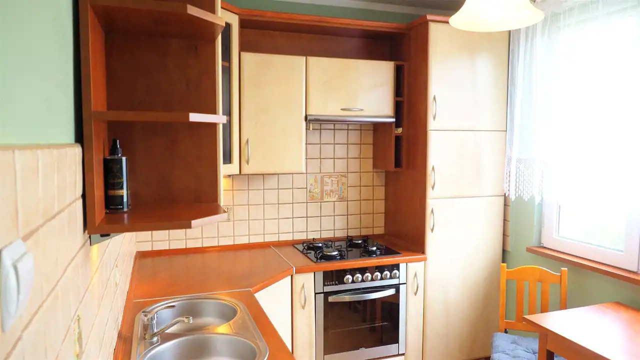 - niezależna kuchnia , zabudowana , sprzęt AGD ( płyta gazowa, lodówka) ,