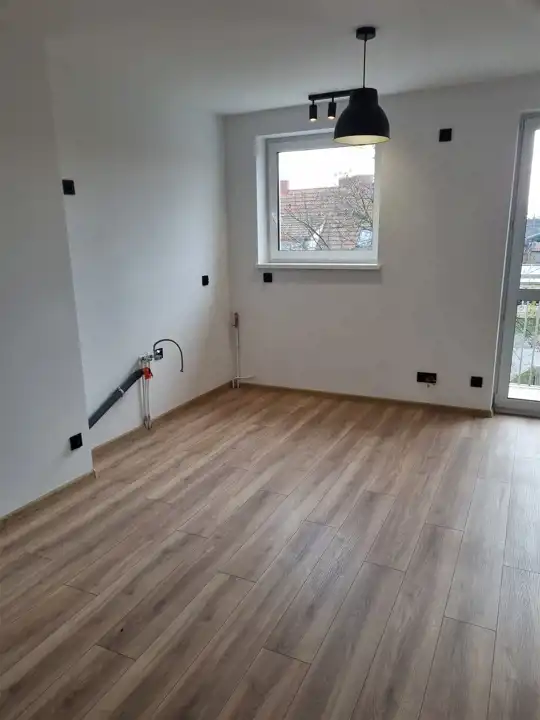 Ściany wygipsowane, malowane na biało, podłogi panele.