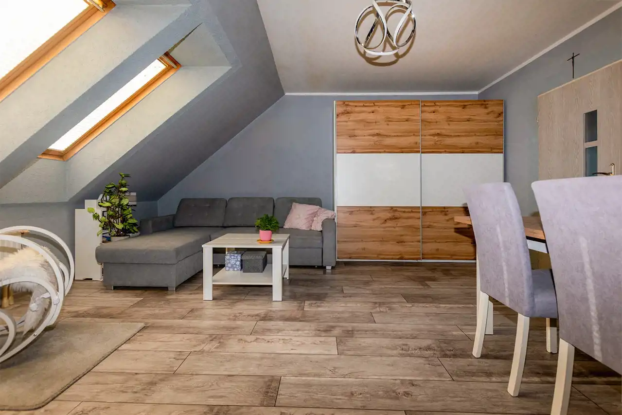 przestronny pokój dzienny z panelami - ok. 19 m2,