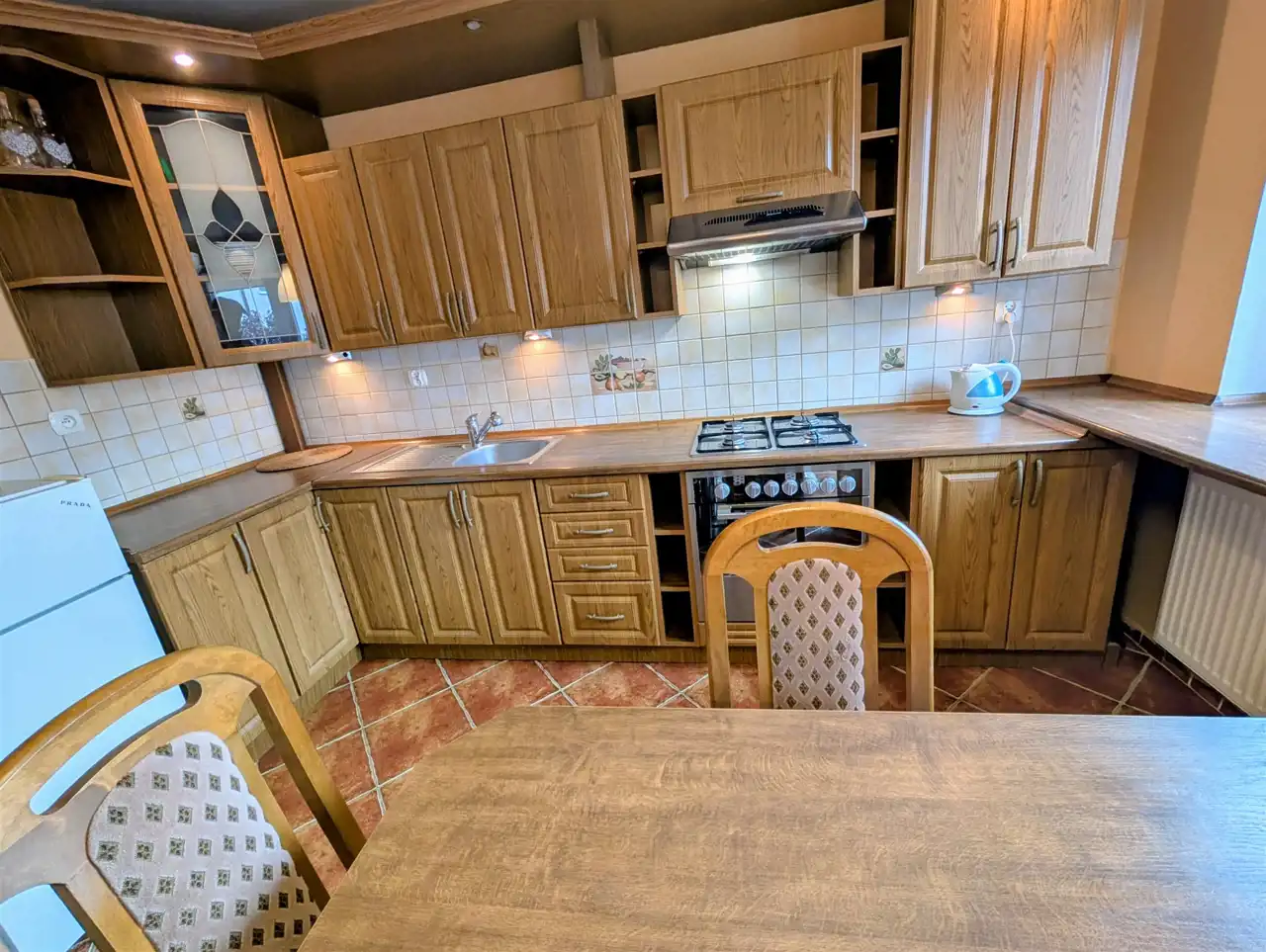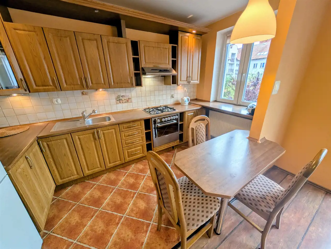 Wyposażenie apartamentu widoczne na zdjęciach. Wnętrze bardzo jasne i słoneczne, tworzące przyjemny ciepły klimat potęgujący uczucie komfortu i bezpieczeństwa.