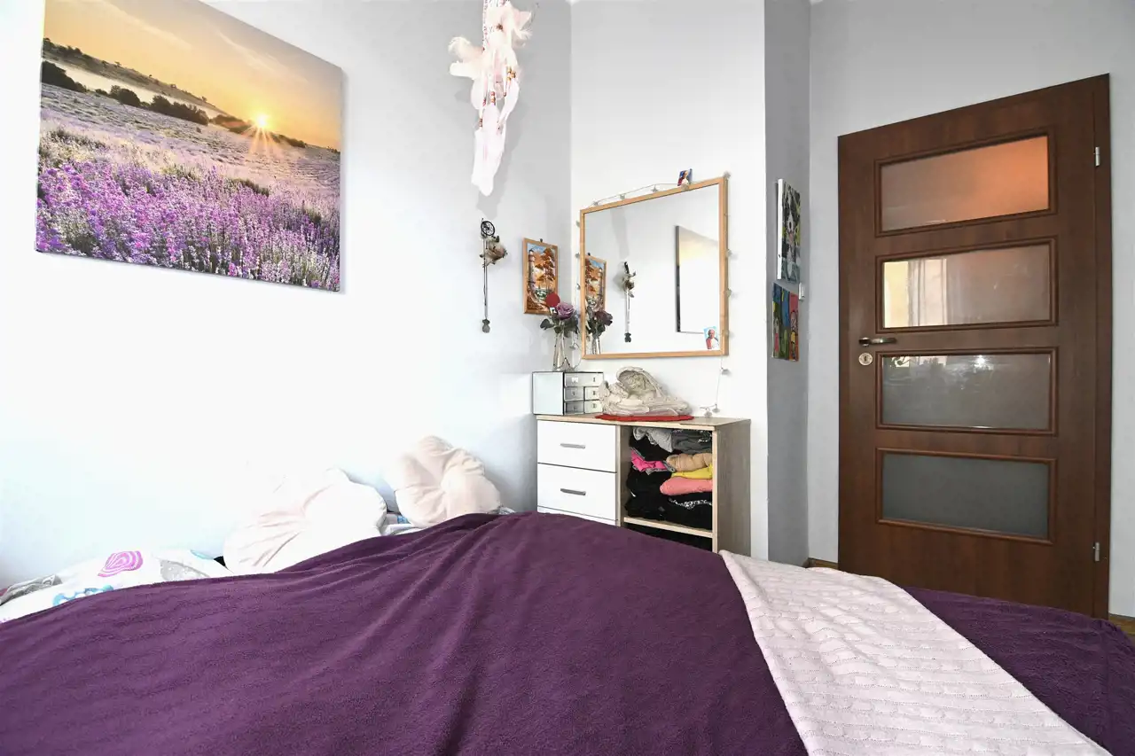 Możliwość własnej aranżacji poprzez wyburzenie ścianek działowych. Okna PCV z ekspozycją południową sprawiają, że mieszkanie jest jasne i słoneczne przez większą część dnia. Dodatkowym atutem jest fakt, że lokal jest środkowy, co przekłada się na ciepło i niższe koszty ogrzewania. Ogrzewanie miejskie, ciepła woda z piecyka gazowego.